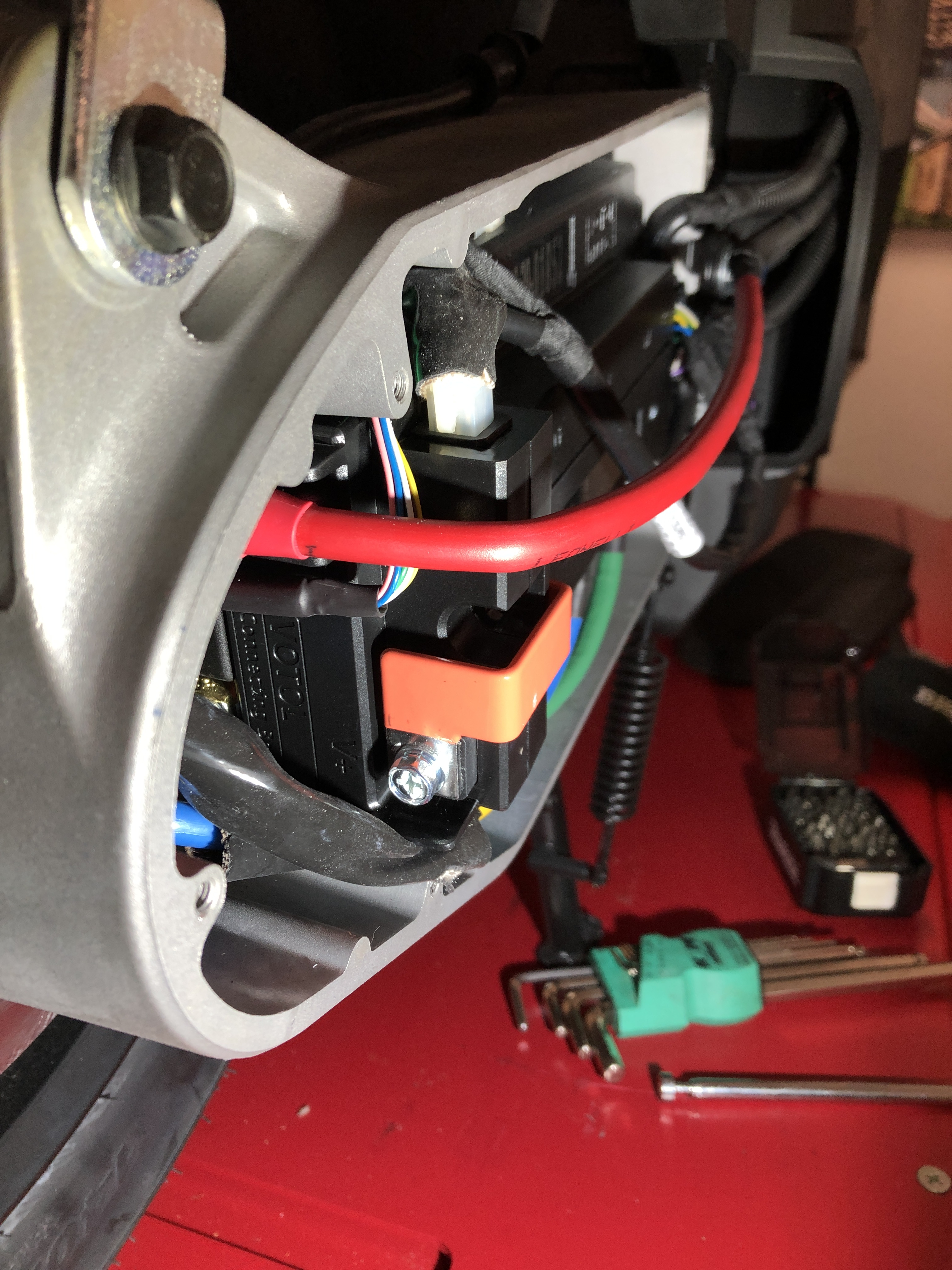 Das Schütz hört man ganz eindeutig klacken, zumindest das mit dem Sevcon verbaute. Vielleicht kann das mal jemand checken? Man kann auch die Schwingenabdeckung recht problemlos aufmachen und einfach mit einem Voltmeter nachmessen.