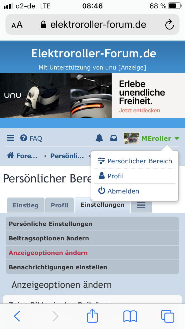 Rechts oben auf Deinen Usernamen klicken und auf “persönlicher Bereich“. Dann auf Einstellungen: