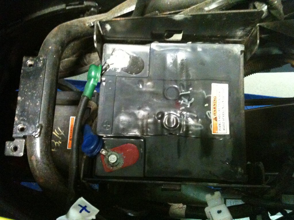 Der Rote Knochen sitzt im Helmfach und hat von unten dicke und fette Schrauben für beide Kabel zum grauen Riegel.