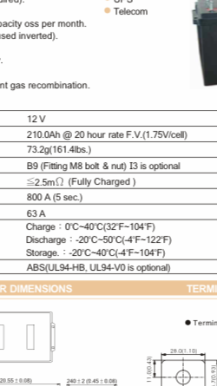 Habe die im Anhang verlinkte Batterie * 6 ( 2 in serie 3 stränge Parallel 24v 630Ah)