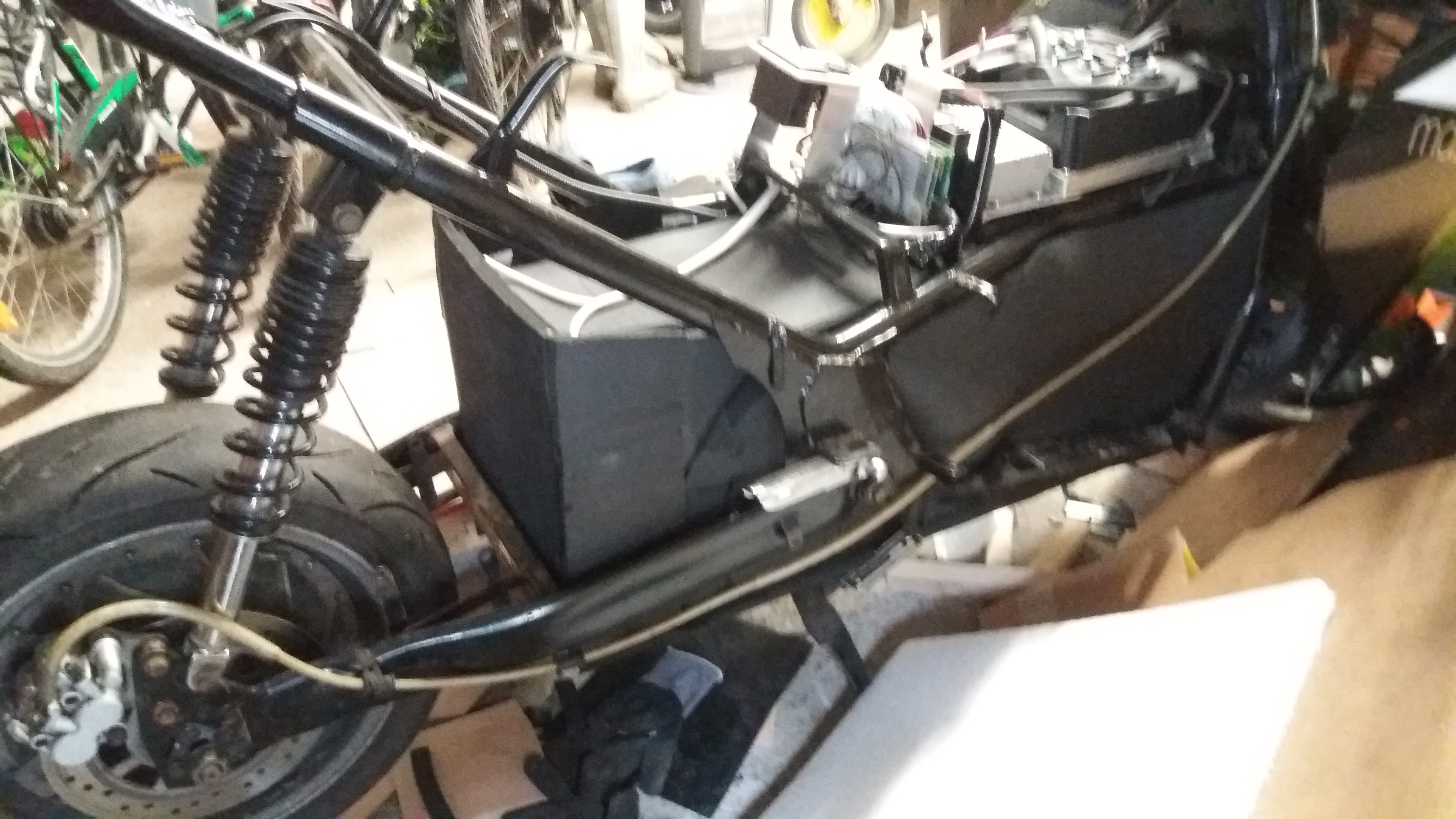 Danke für die Bilder, die aber leider so verwackelt sind, dass keine Details erkennbar sind. Wahrscheinlich zu dunkel... Vor allem was da vorn über der Batterie tront, quasi im ursprünglichen Tankbereich dieser Xunda Plastic & Mould Karosse :D