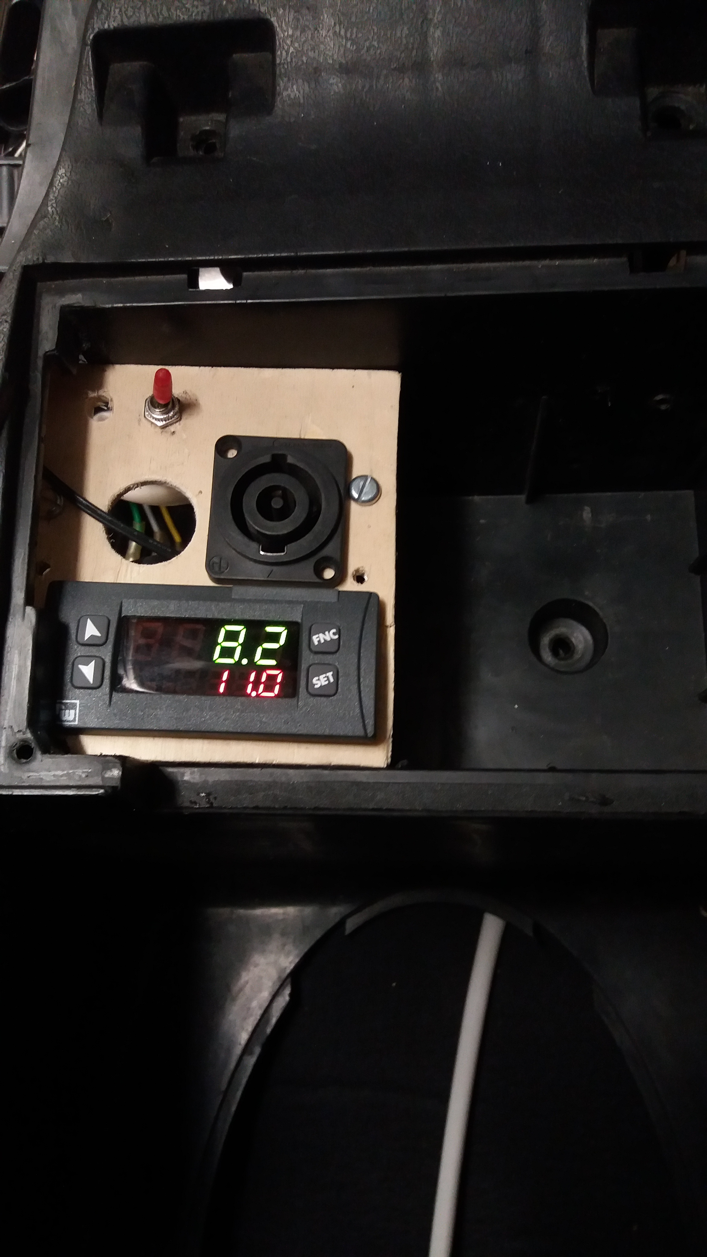 Ins große Loch kommt noch ein USB für den Controller rein und ein Schalter um die Heizungsregelung ein-/auszuschalten fehlt noch.