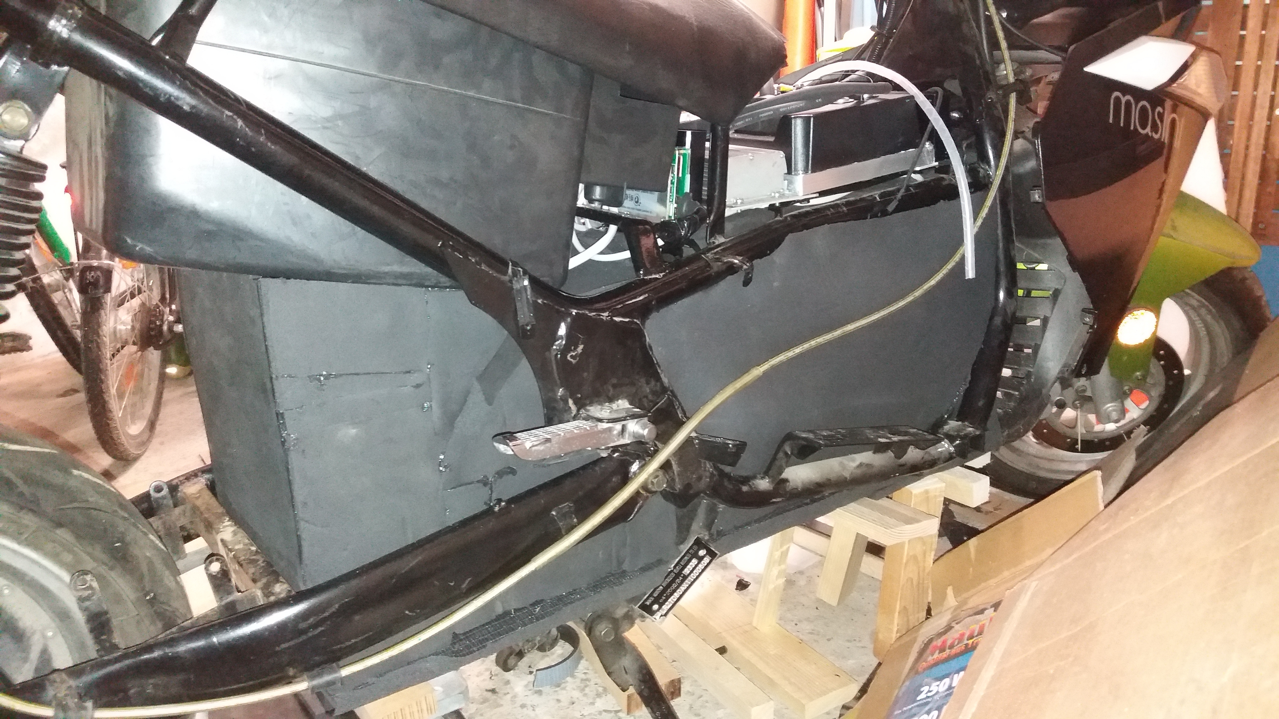 Wenn der Roller dann mal ein paar hoffentlich problemlose Kilometer hinter sich hat, dann suche ich noch einen Platz in der Verkleidung für einen kleinen wasserdichten on-Board Lader, der ist aber dann wirklich nur "nice to have". Im alten Roller habe ich den 10A Lader auch immer im Helmfach transportiert