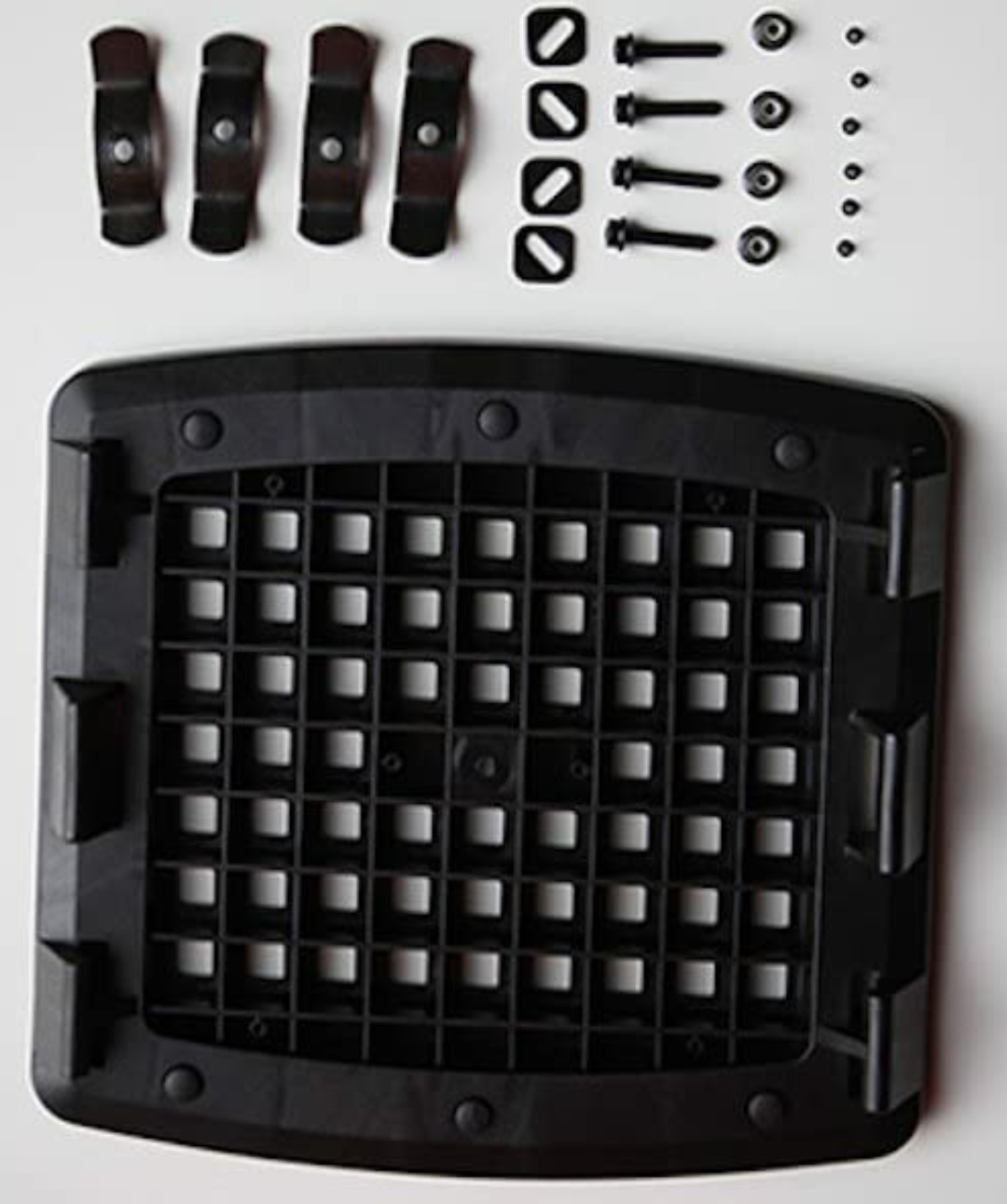 Die Adapterplatte müsstest Du festschrauben können, mit den vielen Bohrlöchern bist Du ja flexibel. Mein Givi auf einem ähnlichen Gepäckträger war auch kein Problem und sieht so ähnlich aus.
