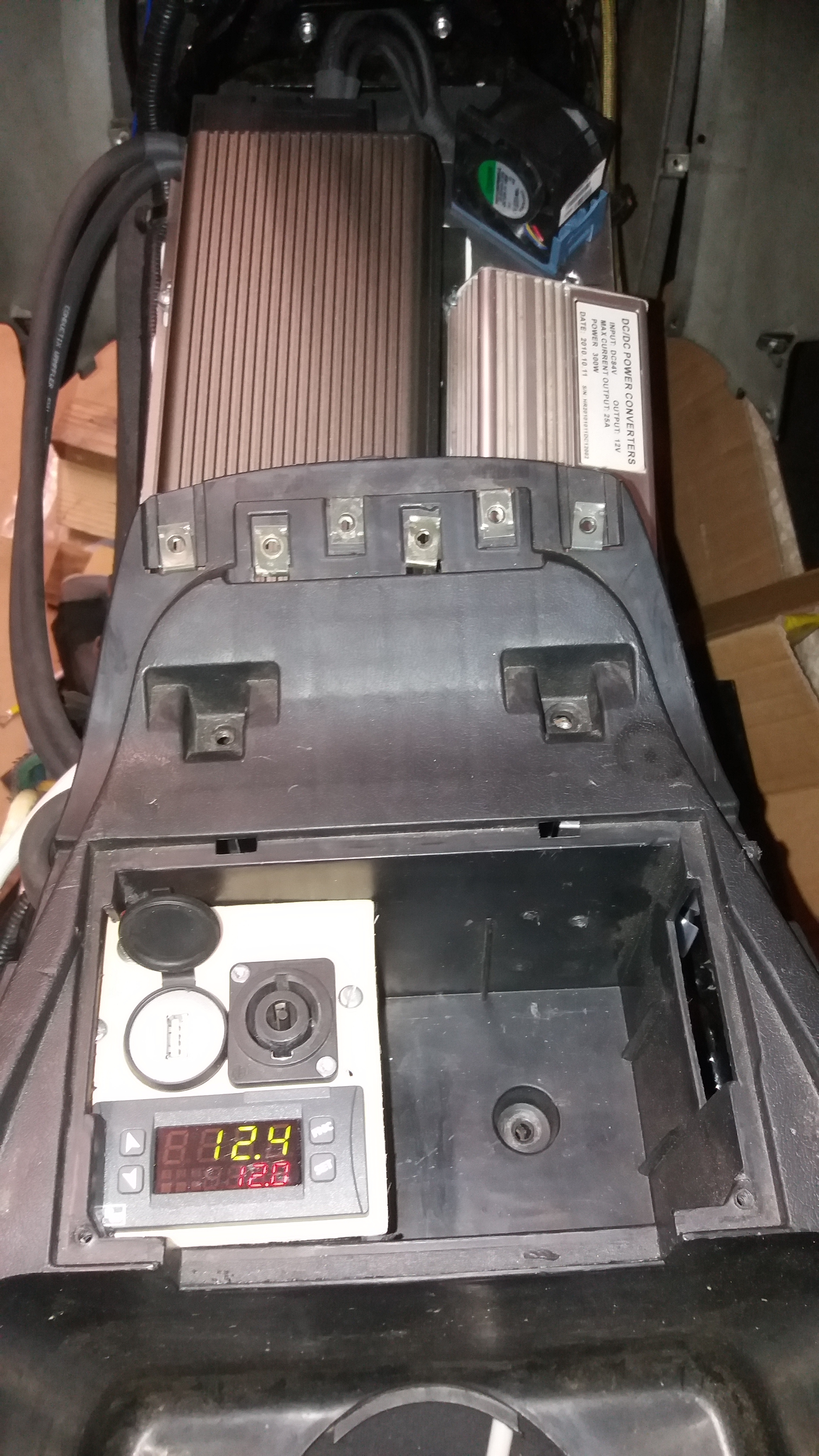 Der 72150 ist drin, alles notwendige ist angeschlossen und so weit ich testen konnte geht alles. Der Lüfter ist ne 18W Turbine er wird bei 45Grad auf der Montageplatte eingeschaltet und wälzt dann ordentlich Luft um.