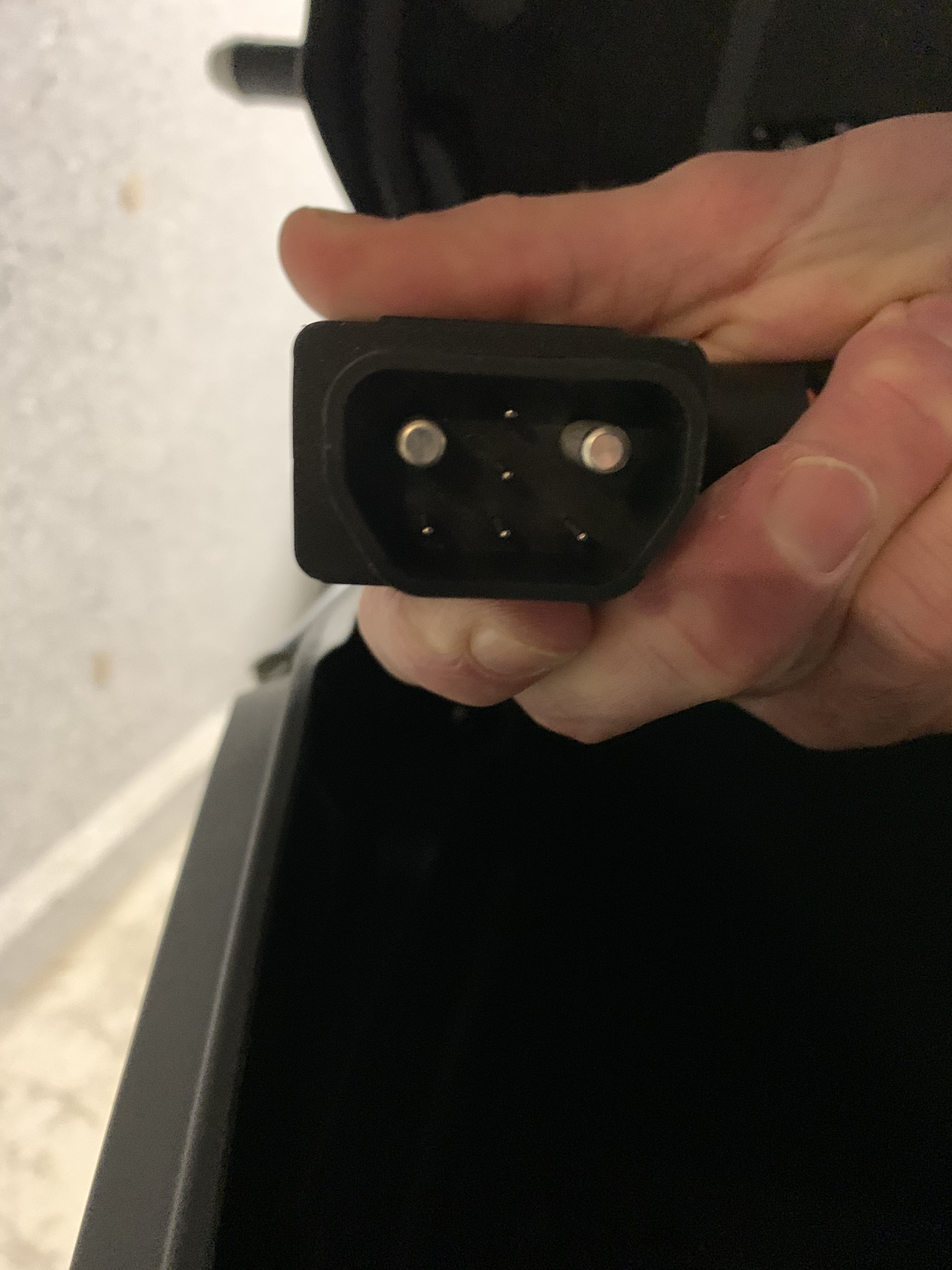Dort wurde das schwarze Transportladekabel von der Außenbuchse zum Akku umgesteckt und hoffentlich auch entfernt.