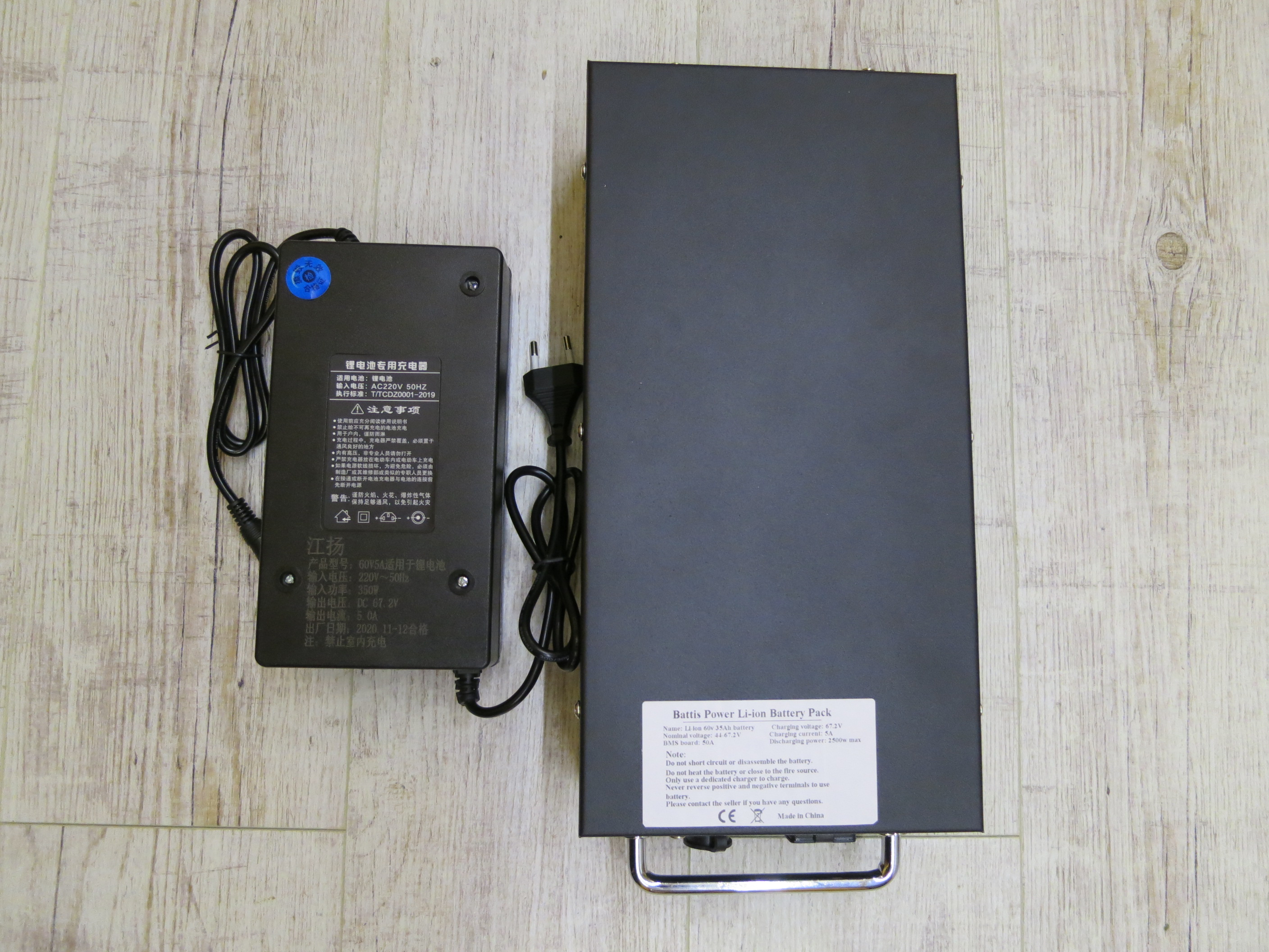 Es sind 96 Zellen in der Bauform 21700, die 16S 6P verdrahtet sind. Ich konnte keinen Aufdruck auf den Zellen entdecken. Ich kann die angegebenen Kapazität von 35Ah somit nicht bestätigen. Es wird also eine sehr lange Fahrt, um die Akkukapazität zu messen.