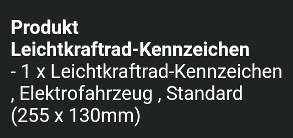 Wenn mna online ein Kennzeichen reserviert, werden einem diverse Maße angezeigt und mit oder ohne E Kennung.