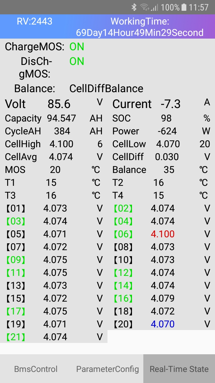 Heute früh direkt nach dem fahren bei 24% SOC lag die größte Zelldifferenz bei 18mV Zellen.