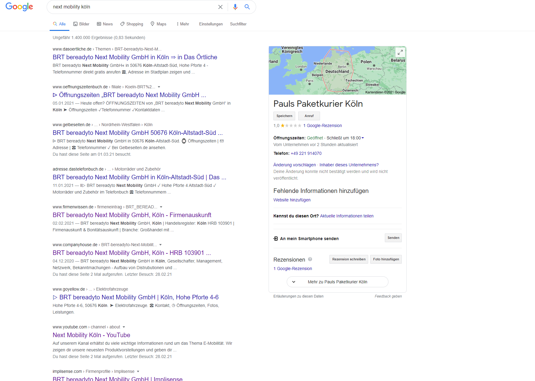 Mittlerweile ist die BRT Schlotmann GmbH lt, google in Thüringen zu verorten und die next mobility GmbH ist ausnahmslos alle google Bewertungen losgeworden.
