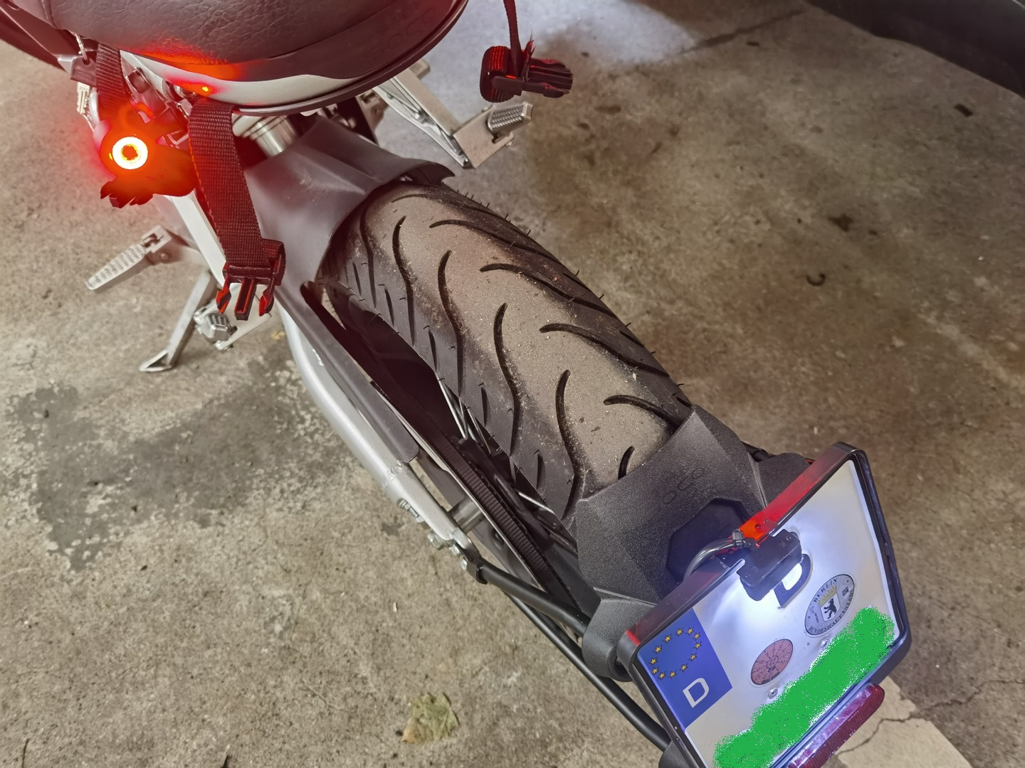 Die seitlichen Reflektoren werde ich die Woche noch ersetzen. Allerdings kommen an die Vordergabel und nicht hinten wie im Originalen.