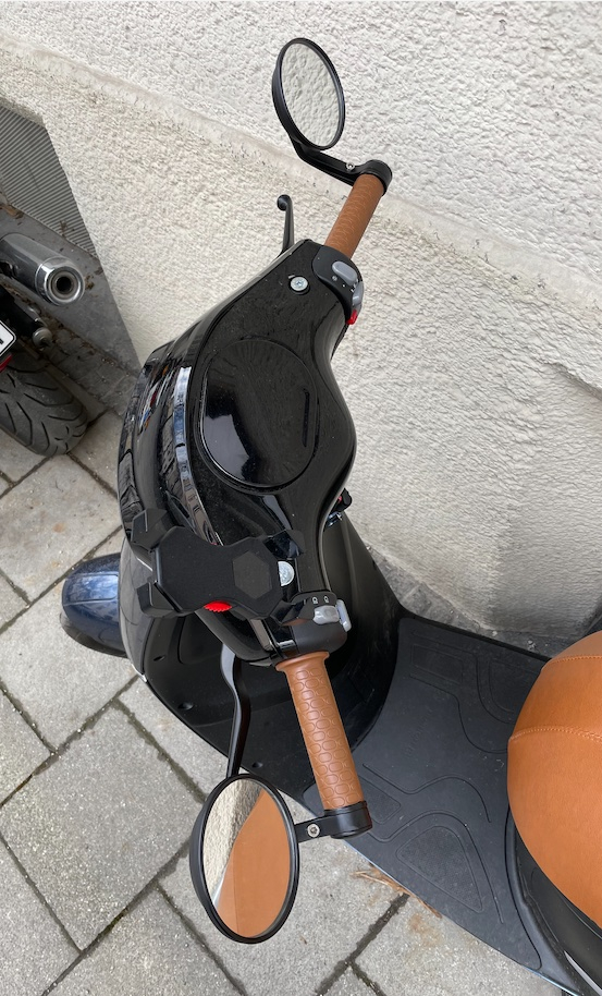 Habe mir Lenkerenden Spiegel angebracht für besseren Blick nach hinten, die orginalen waren mir zu schmal.