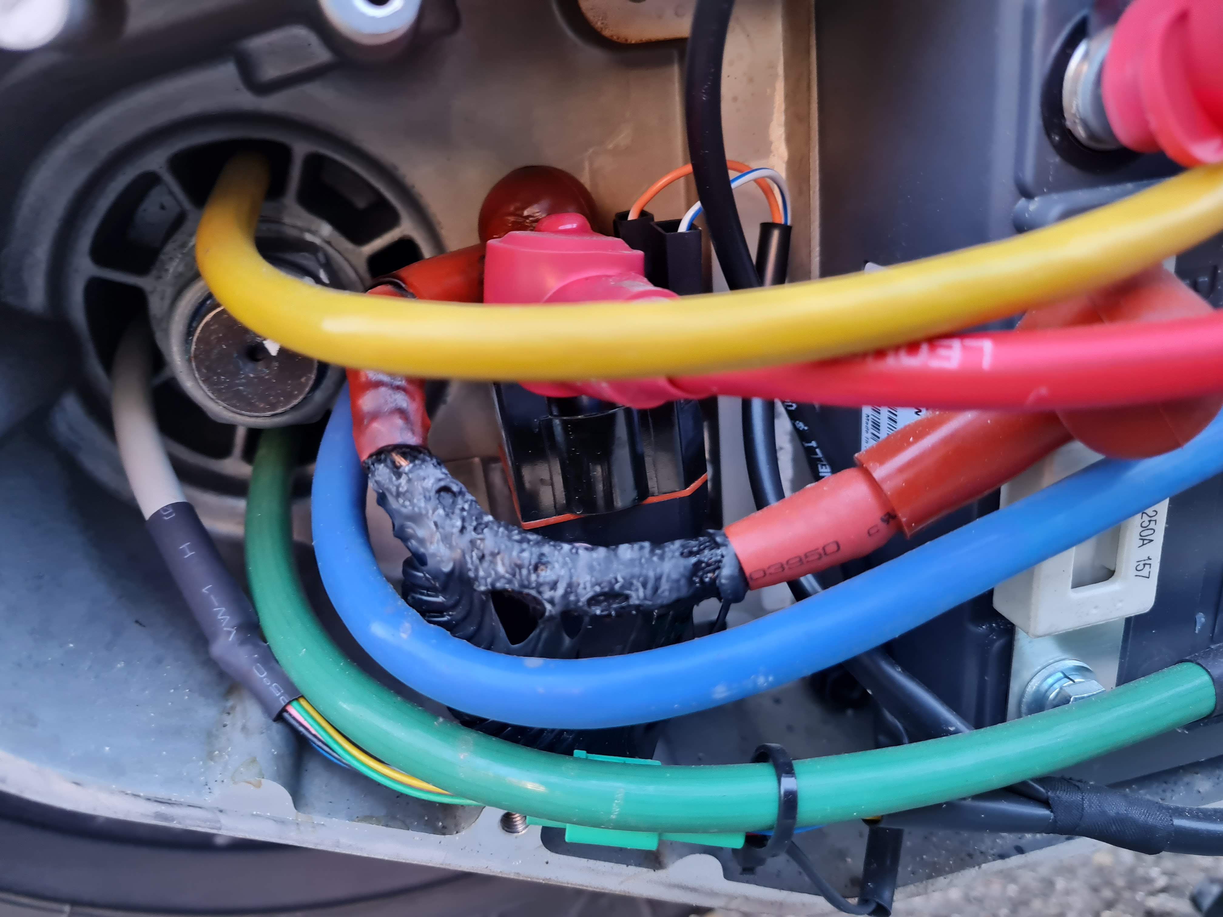Ich hatte mich ja schon ausführlich über den 48V Unsinn bei >5kW Leistung von Silence ausgelassen, da es zu sehr hohen Strömen führt. Dieses verschmorte Batteriekabel ist für mich ein erstes Indiz, dass Silence hier die Physik unterschätzt hat...