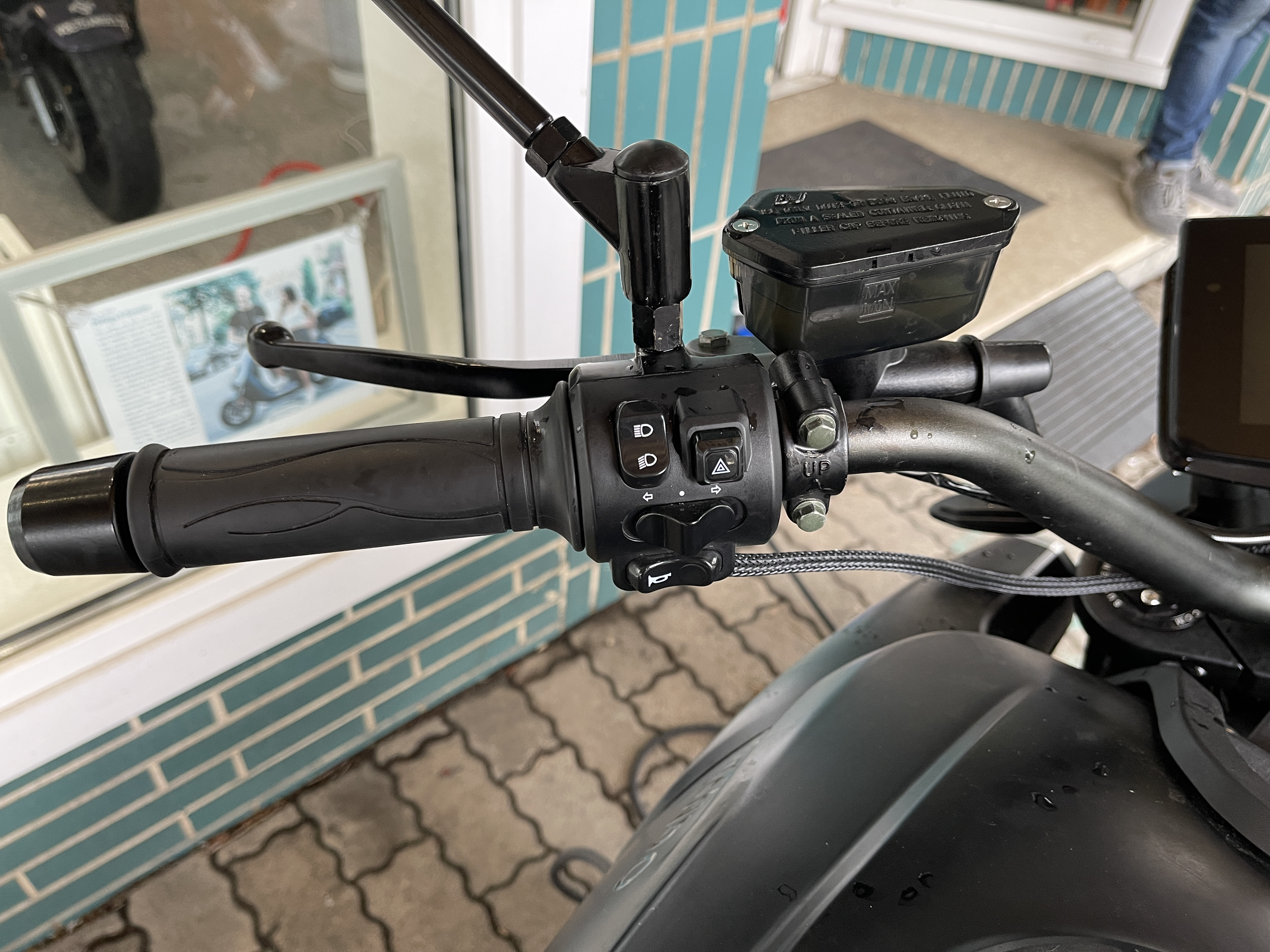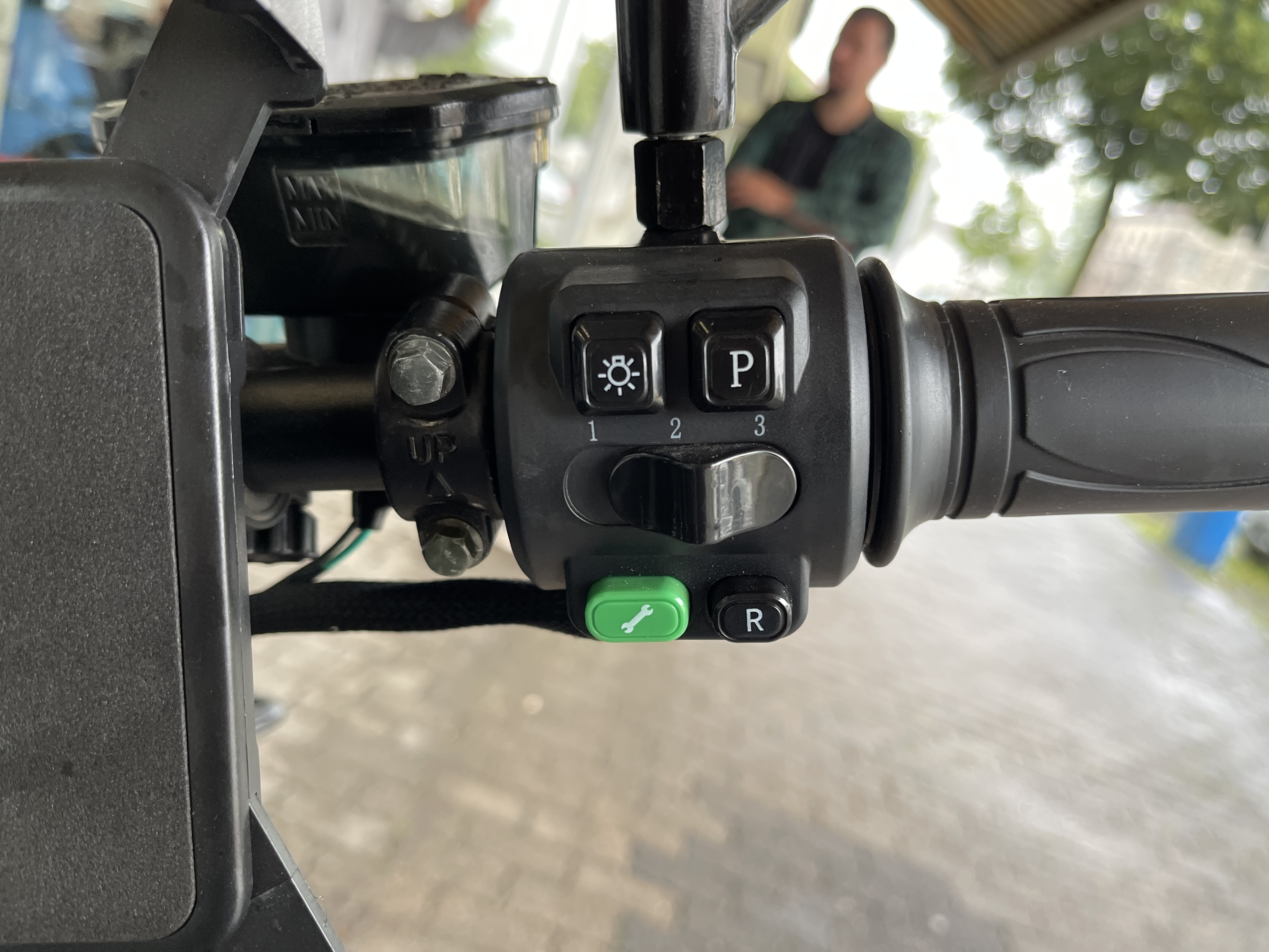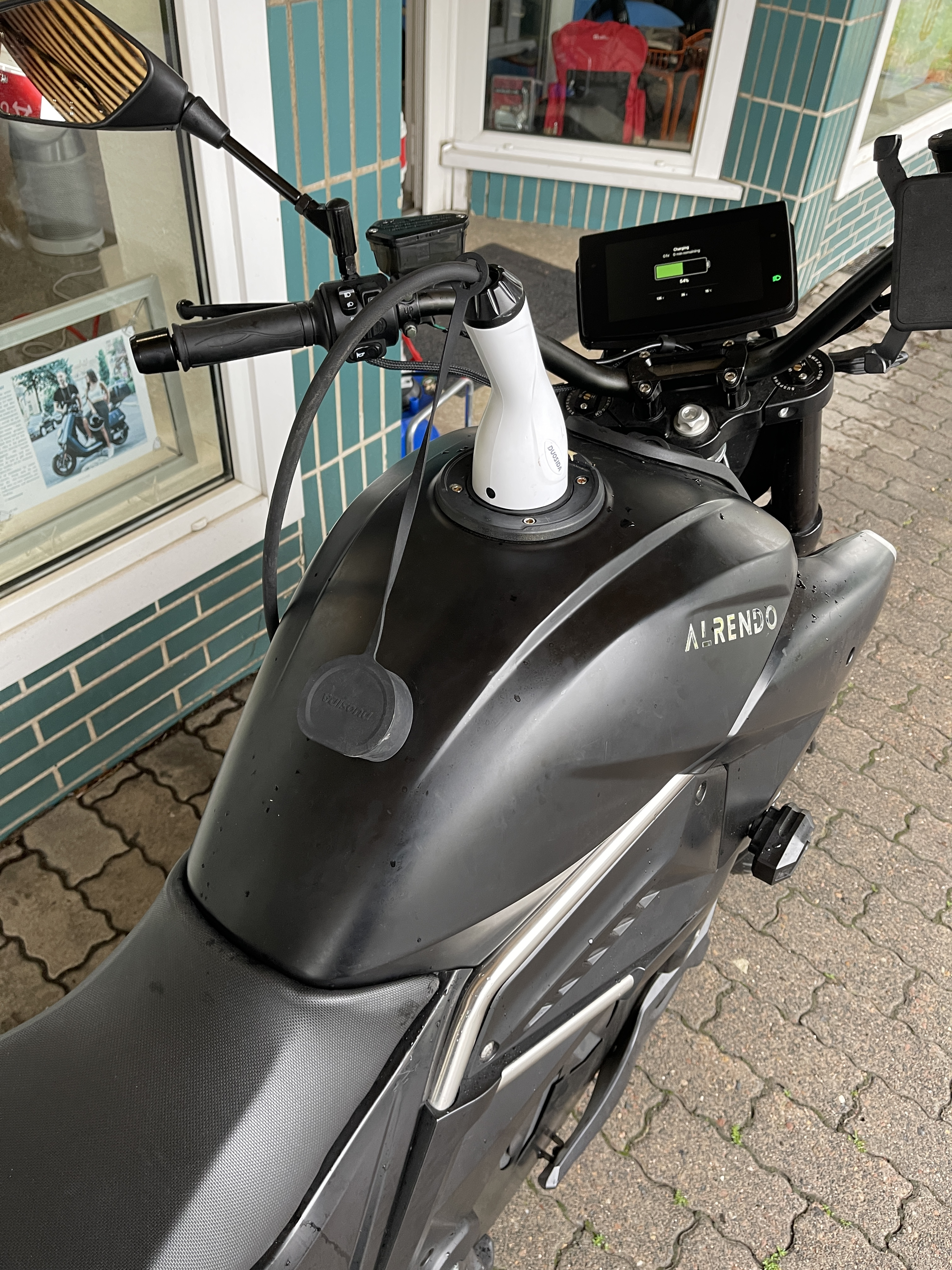 Für mich als früher Enduro- und heute Roller-Fahrer war der Lenker schon recht hoch, verbunden mit den angenehm hinten liegenden Fussrasten gewöhnungsbedürftig. Alrendo wird wohl noch einen flacheren Lenker optional zur Verfügung stellen.