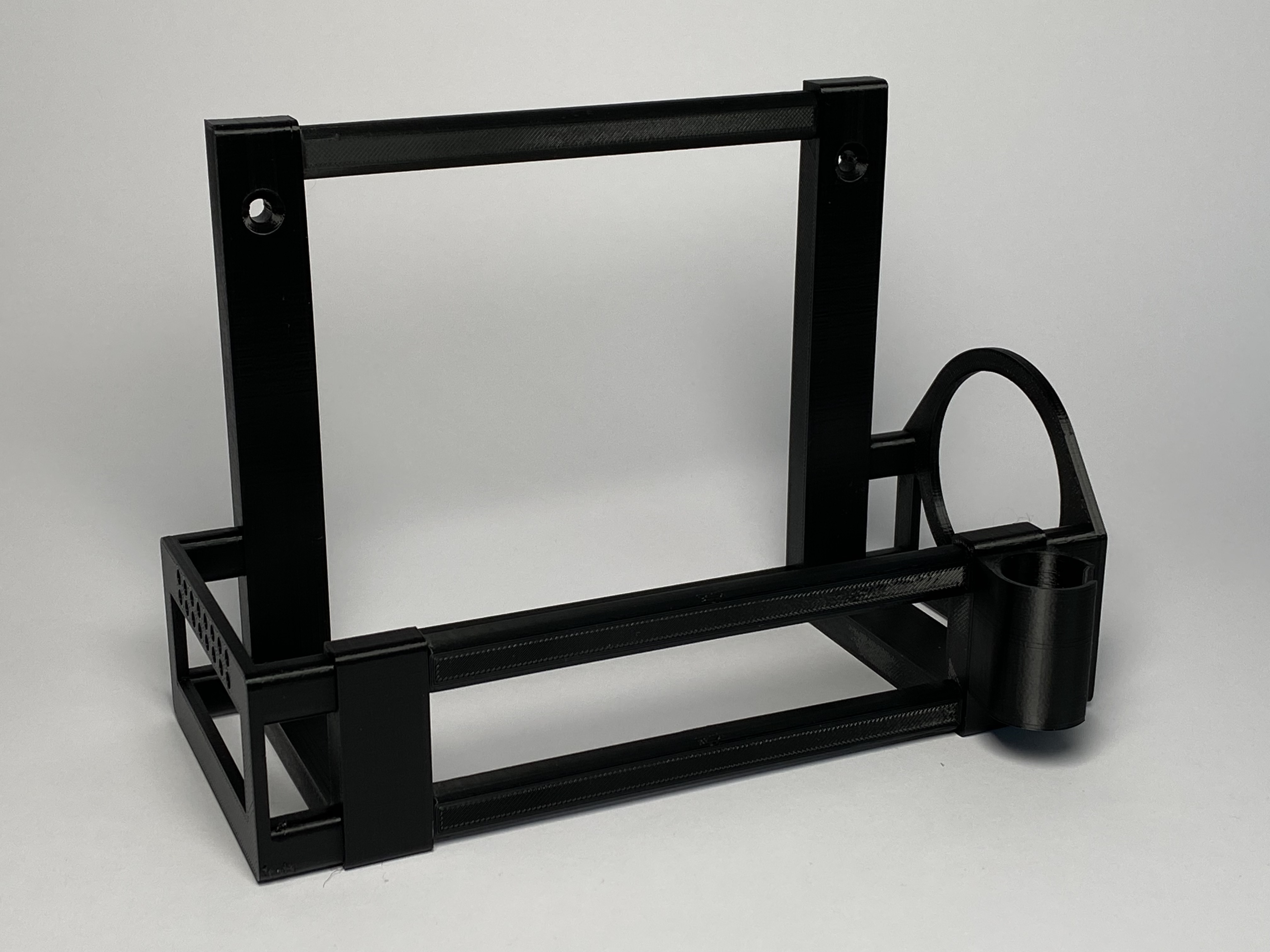 Zum Design: Neben der Stabilität war es mir wichtig, dass man das Ladegerät auch in der Halterung verwenden kann. Dafür durfte natürlich der Luftstrom des Ventilators nicht blockiert werden. Auch das Kabel mit dem Stecker wollte ich vom Boden weg und sicher aufbewahrt haben.