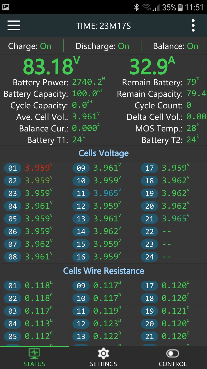 Hast du dich bei der 5V wake up Spannung verpolt? Und was ist am Jikong BMS Active Balancer BT besser schlechter als am ANT BMS? Das Coulombmeter ist übrigens recht praktisch. Ich habe gestern 40Ah verbraucht für 80km mit 3,7V weniger als dein Akku hat.