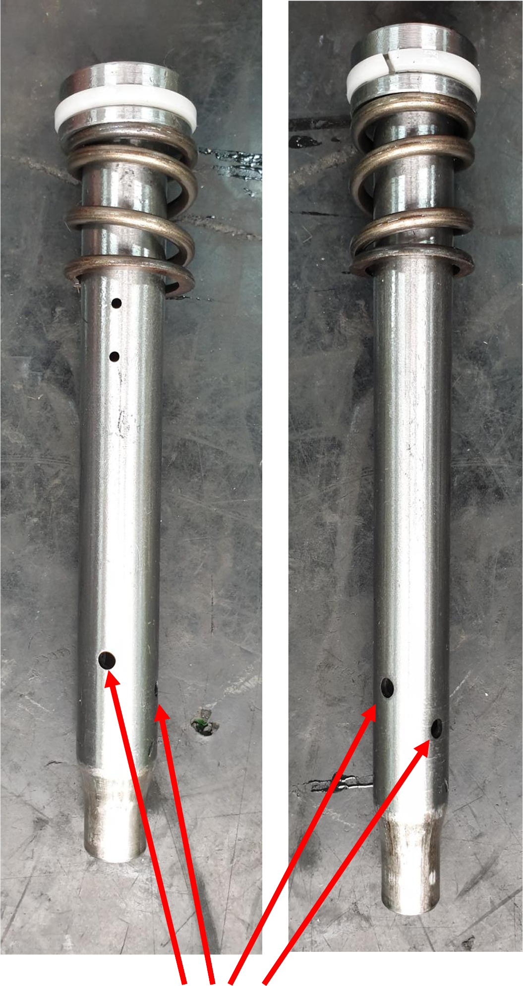 Jetzt habe ich 135 cc SAE15 auf jeder Seite und die Löcher der Innenrohre wurden vergrößert (von Durchmesser 4 auf 5).