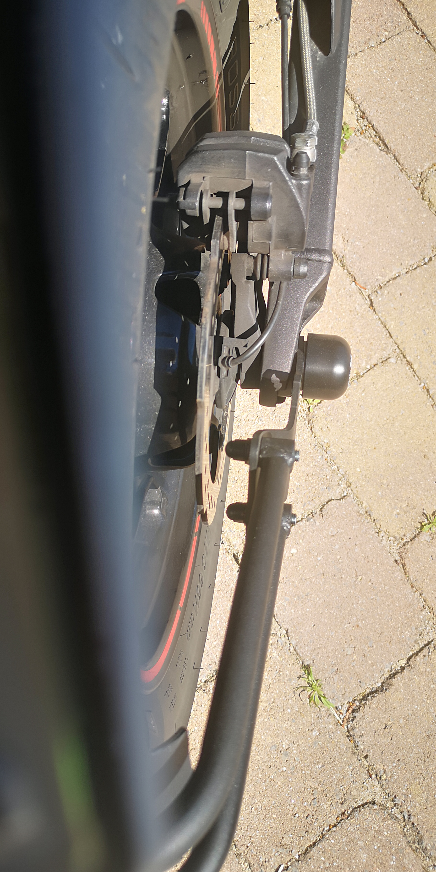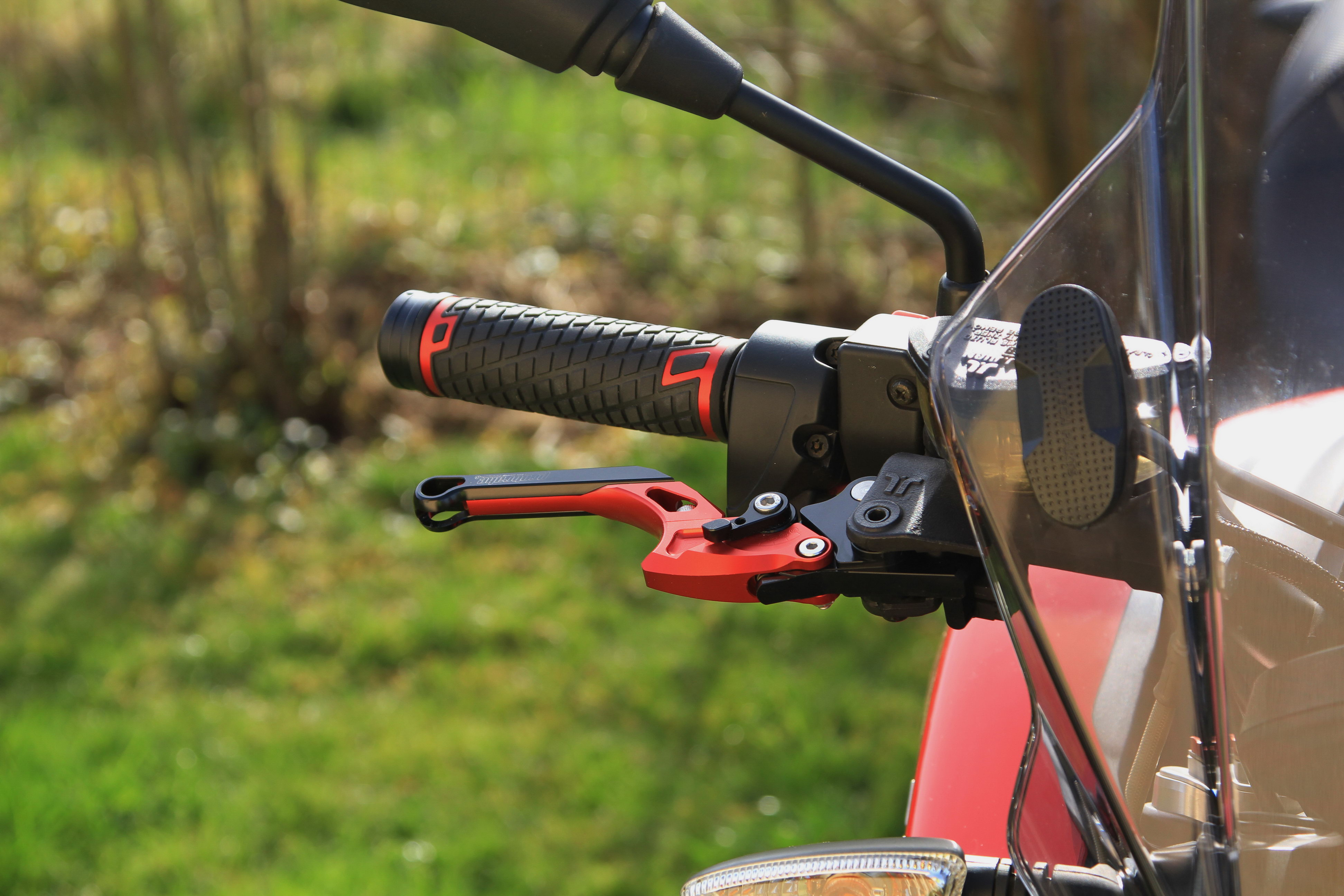 Seit Ende Februar bin ich im Besitz einer gebrauchten Zero SR ZF13.0 - und habe jetzt auch ein paar Modifiktaionen vorgenommen. Optisch weniger schön, aber zum Schutz vor Wind und Regen das Schild von Puig. Dann etwas dickere und gröbere Griffe, die passenden Lenkerenden und ein neuer Bremshebel von ProBrake. Der Orginal Bremshebel liegt mir gar nicht gut in der Hand und ist mir auch zu lang, ich greife den Hebel gern kurz vor dem Ende und nur mit 2 Fingern. Hebel weiter nach innen auf dem Lenker schieben ging nicht - denn dann war im Spiegel gar nichts mehr zu sehen (ist eh schon recht wenig) - den der Spiegel ist ja auf der Bremsschelle montiert. Außerdem gefällt mir der neue Hebel optisch besser ist in der Hebelweite sehr einfach und auch während der Fahrt einzustellen und im Falle eines Falles klappt er weg. Optisch gab es ein paar rote Streifen auf der Akkuabdeckung und unter dem Sitz und Aufkleber auf den Felgen.
