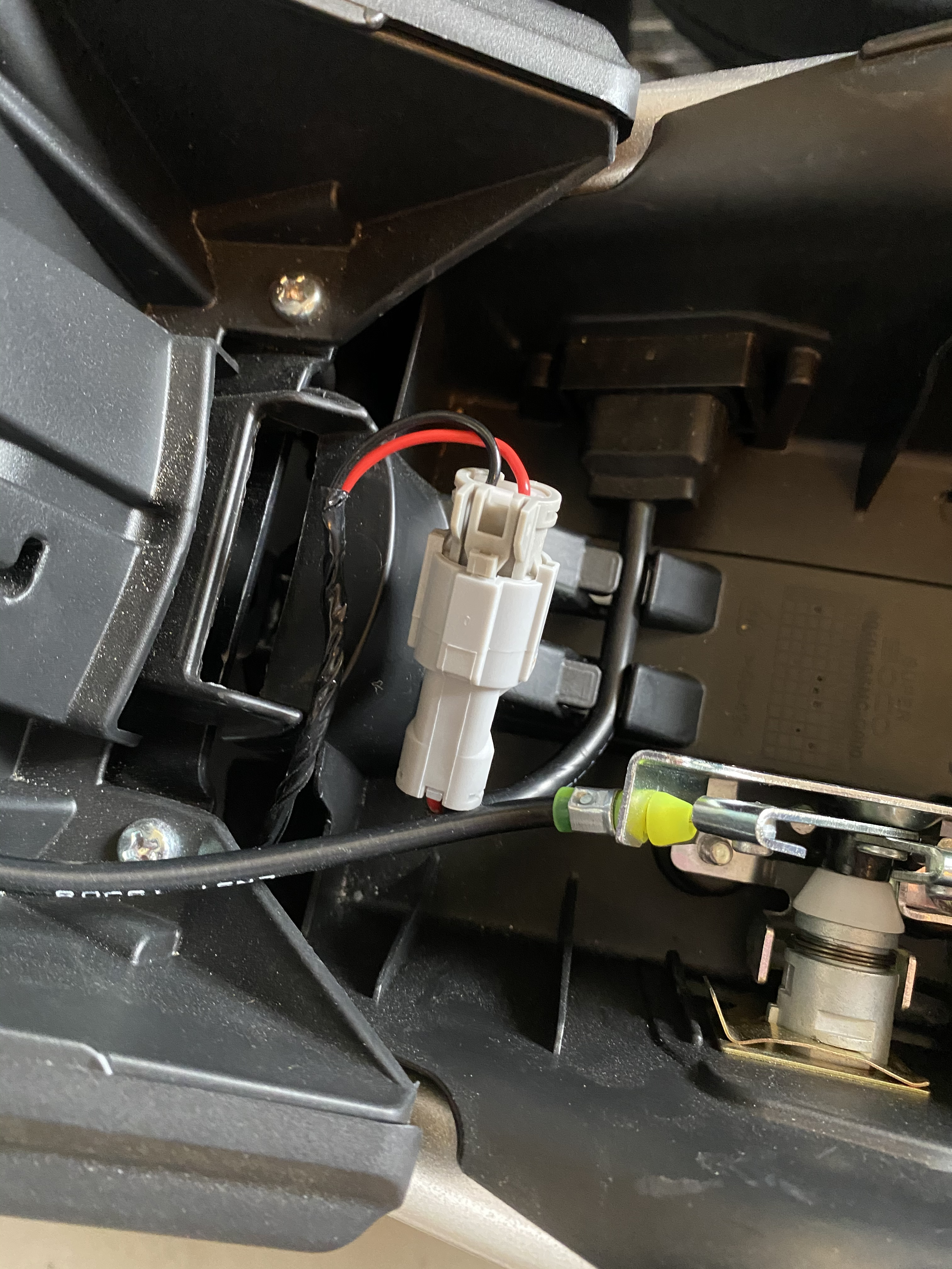 ( nebenbei, mein Händler hatte auch vergessen den zweiten Ladestecker abzubauen und ich musste auch erstmal die sitzbank entfernen und den zusätzlichen ladestecker entfernen und die zwei grauen stecker zusammen stecken )