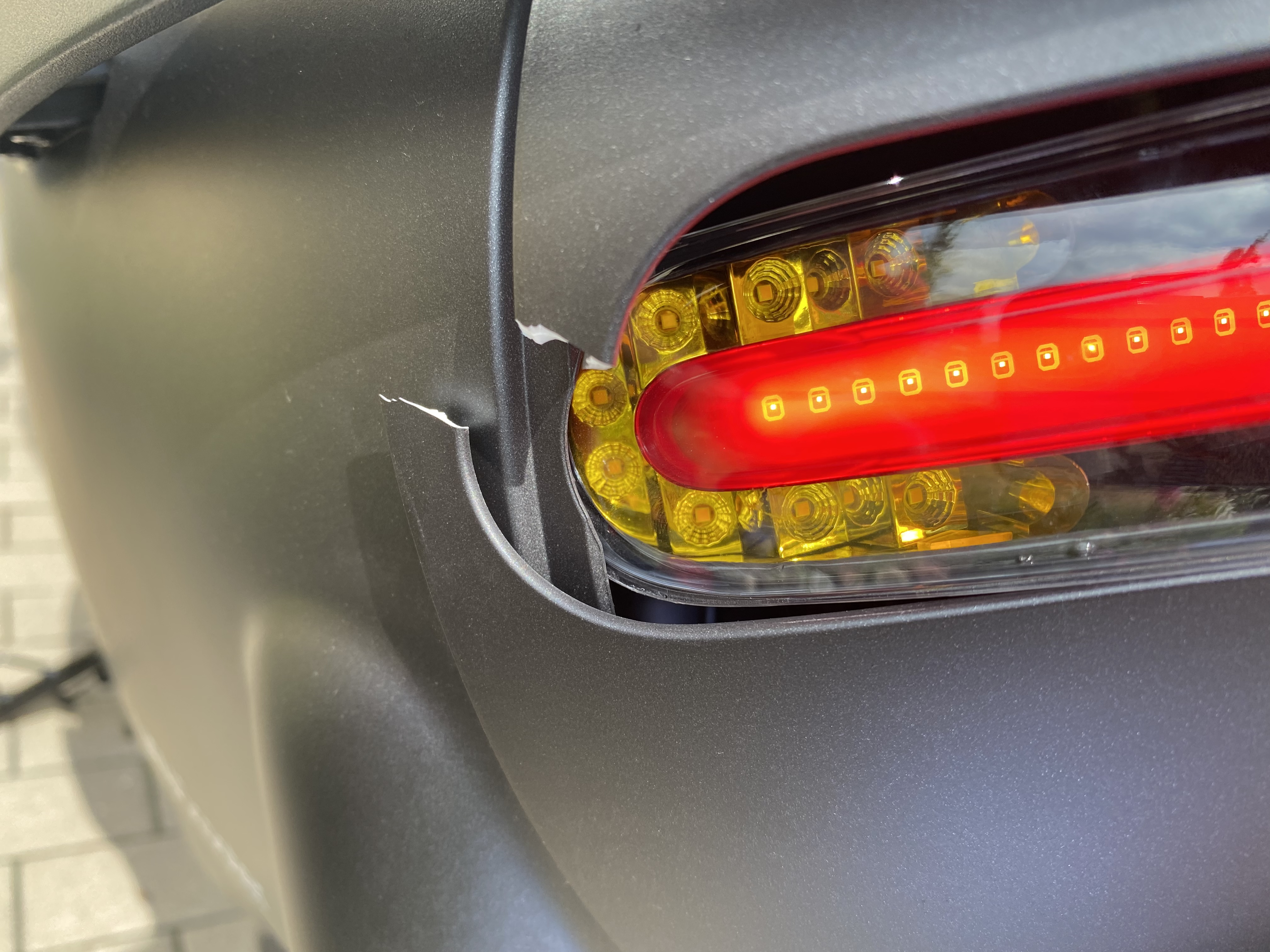 Leider kam der Scooter schon mit einem Schaden am Heck an.