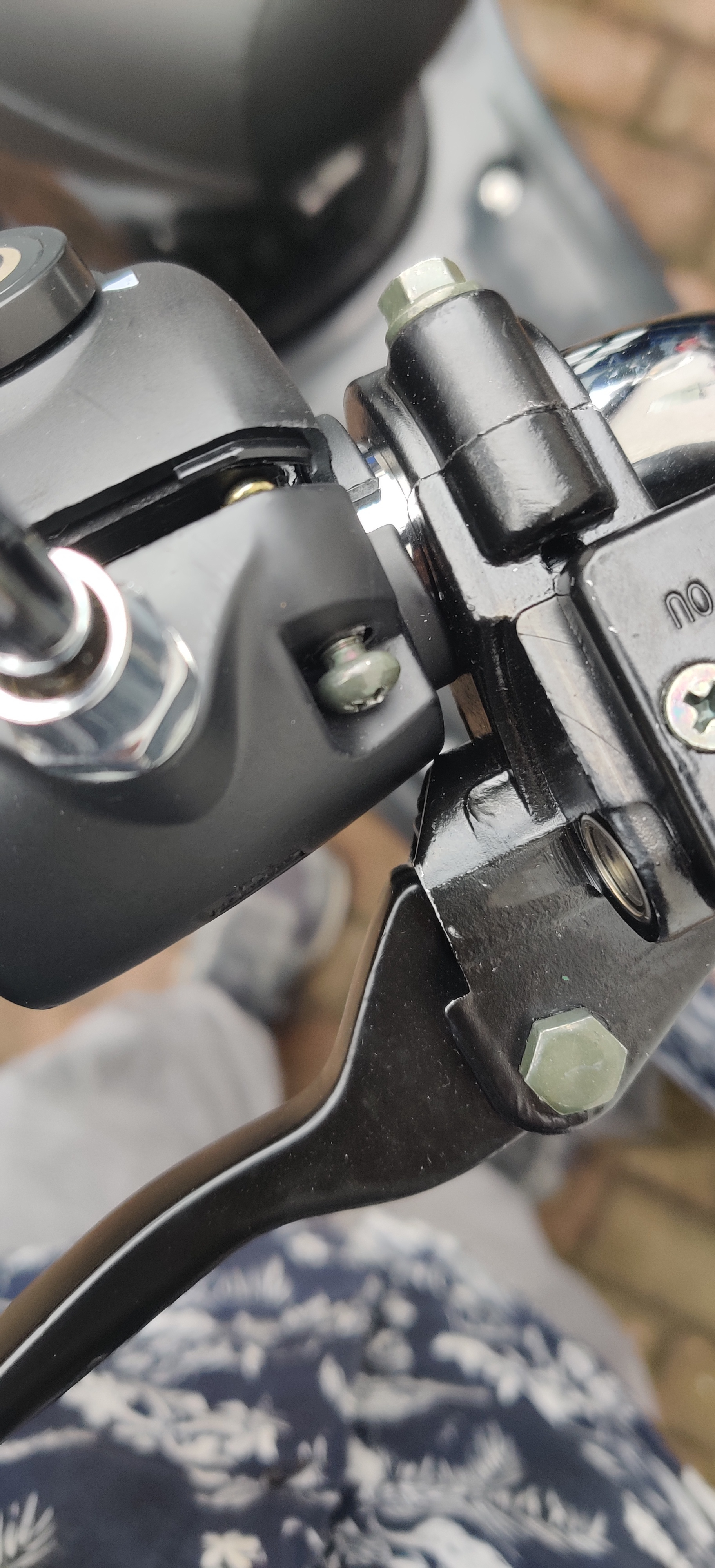 Beim Fahren ist mir aufgefallen, dass er hin und wieder plötzlich abbremst. Diese Problematik hat auch ein anderer Forumsteilnehmer. Habe auch diesen Beitrag kommentiert. Als ich gestern von Bäcker heim fuhr, war plötzlich der Gasgriff extrem locker und ich habe sofort angehalten. Ich musste feststellen, dass sich zwei Schrauben gelockert hatten. In Ermangelung eines Schraubenzieher habe ich den Roller heimgeschoben.