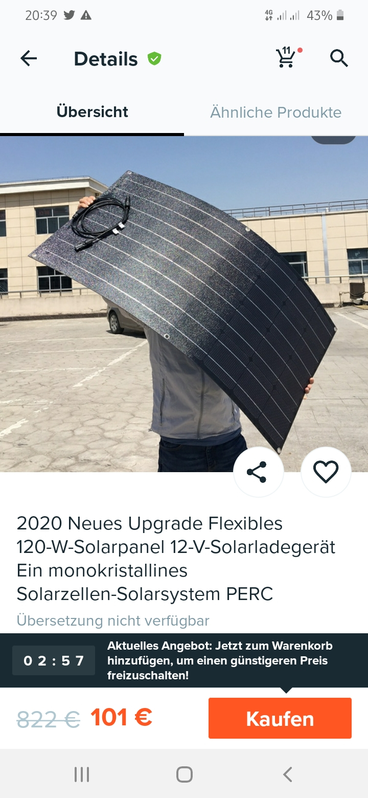 Aber mit so kleinen Paneelen ist mit dem E-Roller wirklich kaum Staat zu machen. Erst mit 3 oder 4 davon fängt es an, Sinn zu machen.
