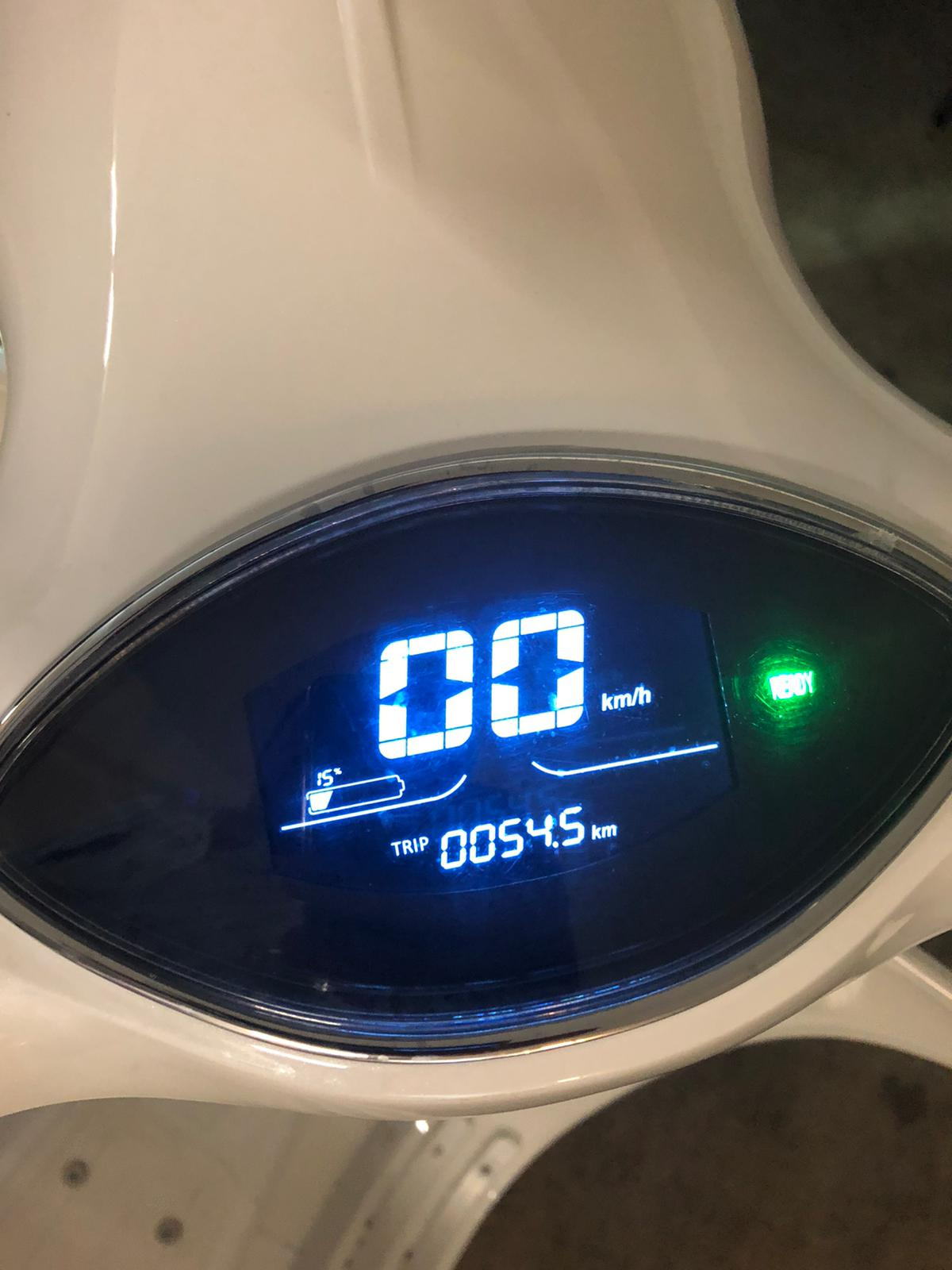 Ich habe den Roller jetzt einige Tage seid dem letzten Laden gefahren und bin gerade bei 15% Restakkuanzeige in die Garage gefahren. Insgesamt waren es 54,5 km. Das heißt theoretisch sind ca. 64 km Reichweite drin. Das sollte locker passen mit den angegeben 60km. Die Akkuanzeige, wie ich ja schon oben geschrieben hatte ist am Tacho sehr genau.