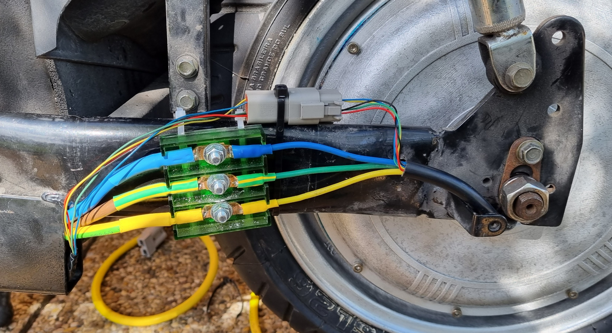 Eine saubere Klemmleiste ist das, und so ähnlich, wie es bei ALLEN E-Rollern mit Radnabenmotor sein sollte, serienmäßig schon!