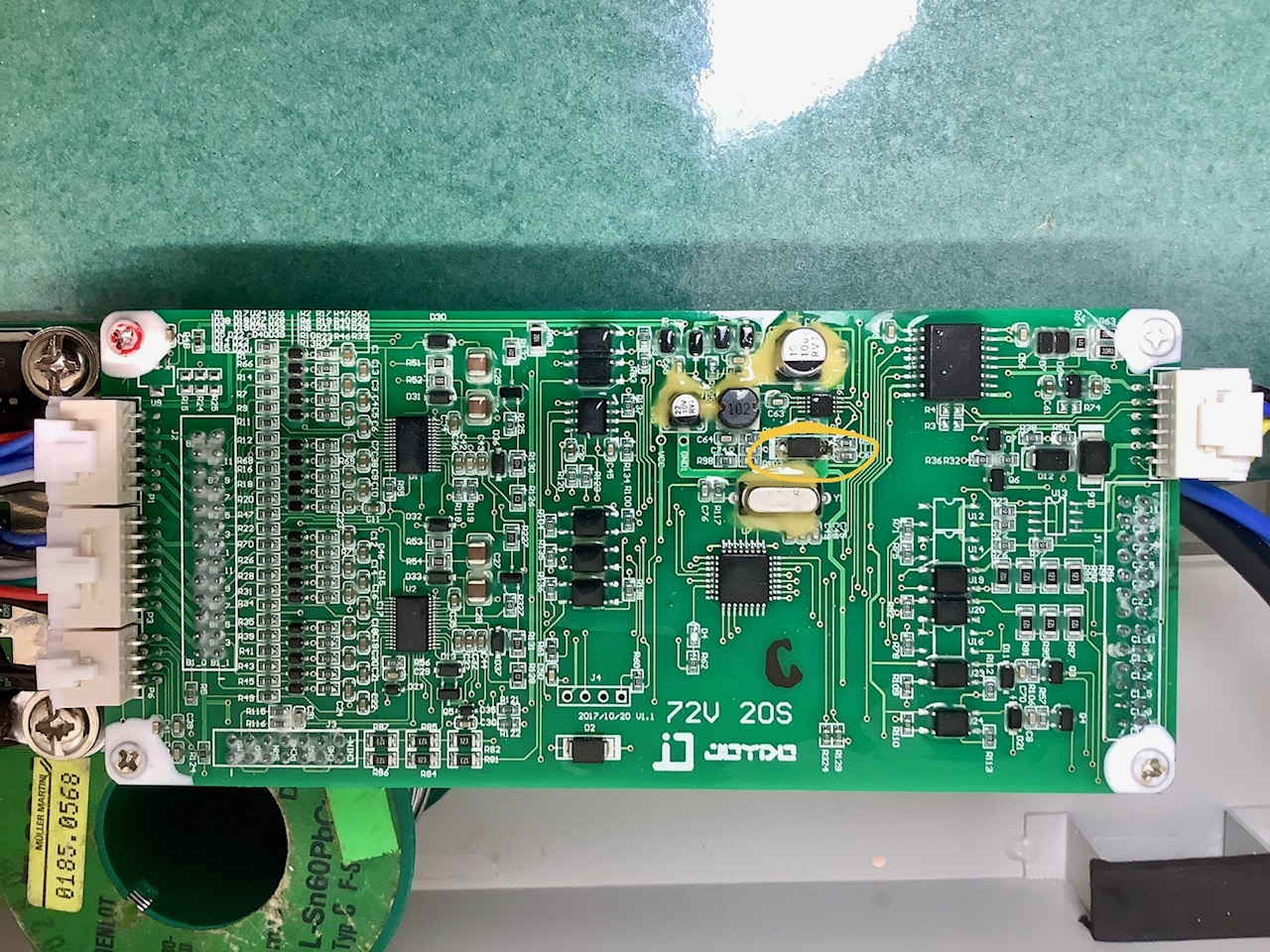 mit akku (B) ist alles ok. also liegts nicht am roller/kabel. ich öffne den akku (A) und sehe nichts ungewähnliches, verbranntes. Ich öffne den akku (B), baue den BMS aus und setzte den in den (def) akku (A) und setze den in den roller: alles ok.