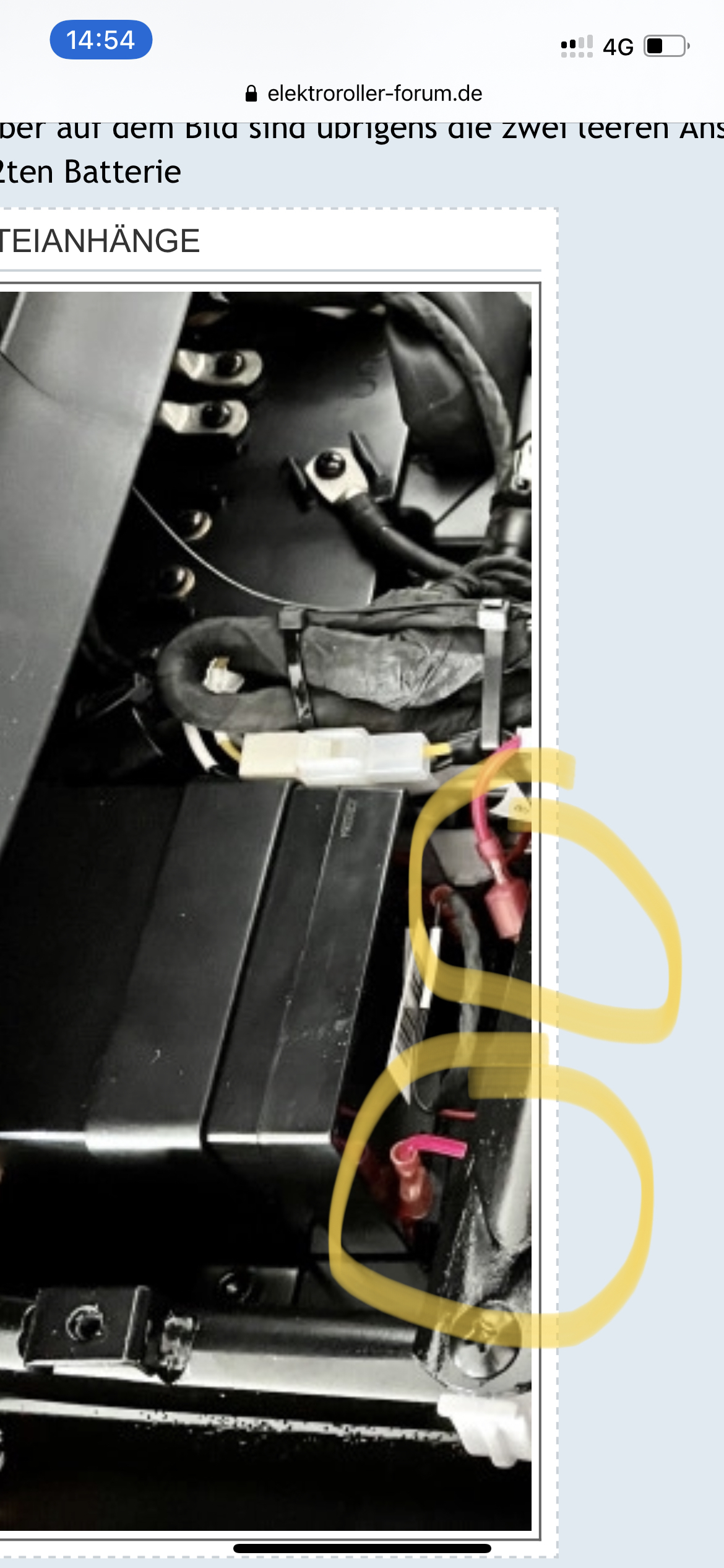 Ich habe die 2 gelb markierten Kabel abgezogen. Das ist doch die interne Batterie, richtig?