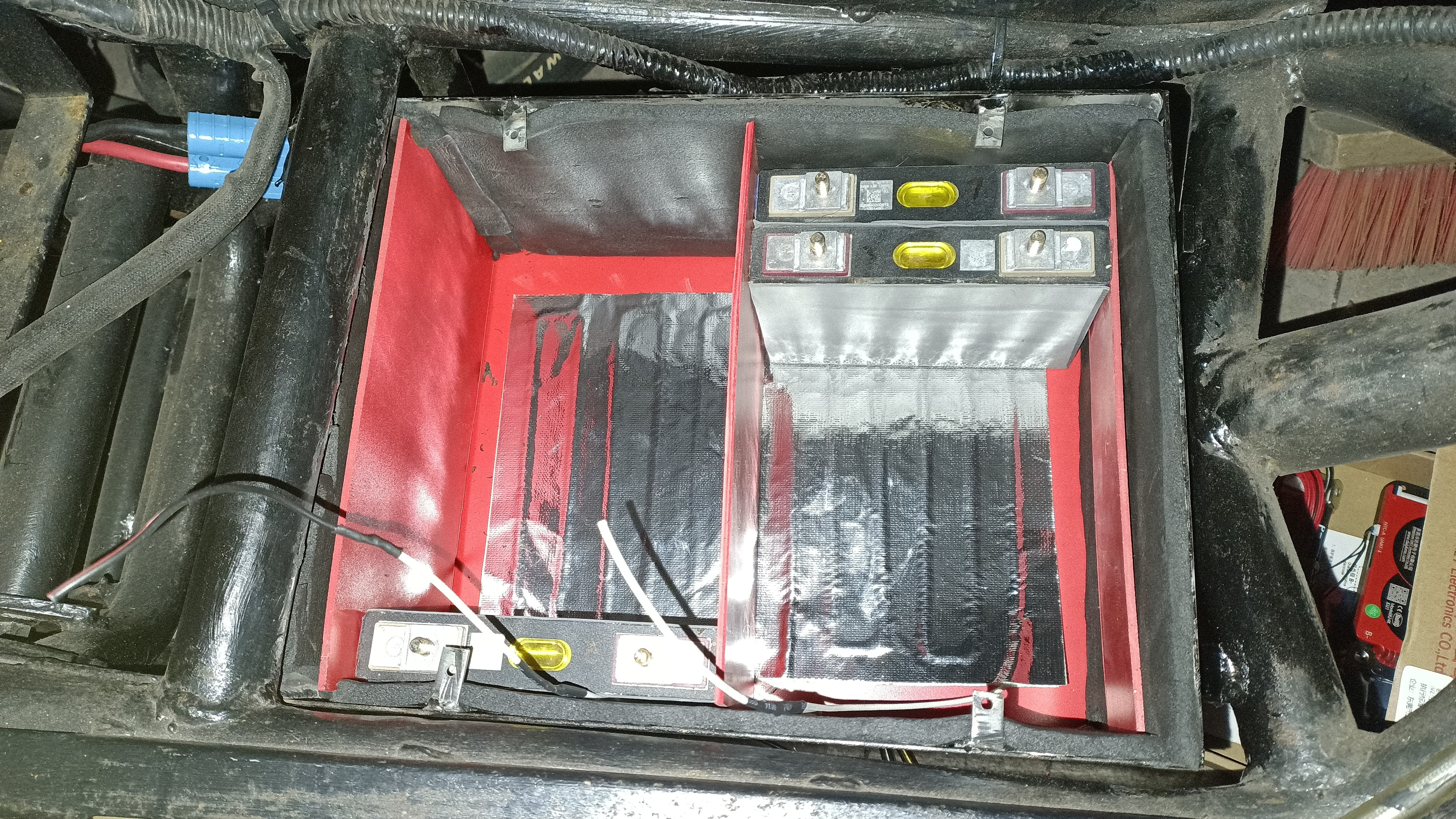 Ebenfalls mit verbaut wird eine Akku-Heizung auf 12v Basis mit Absicherung, Thermofühler und Schalter zum deaktivieren bei zu warmen Temperaturen oder nicht Nutzung.
