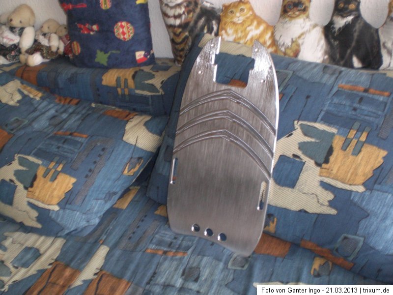 Also, das Teil ist aussehensmäßig absolut edel und ich denke, es wird am Revoluzzer noch viel besser aussehen, als das originale Holztrittbrett der Basisvariante. Und sicherlich ist es auch pflegeleichter und robuster.