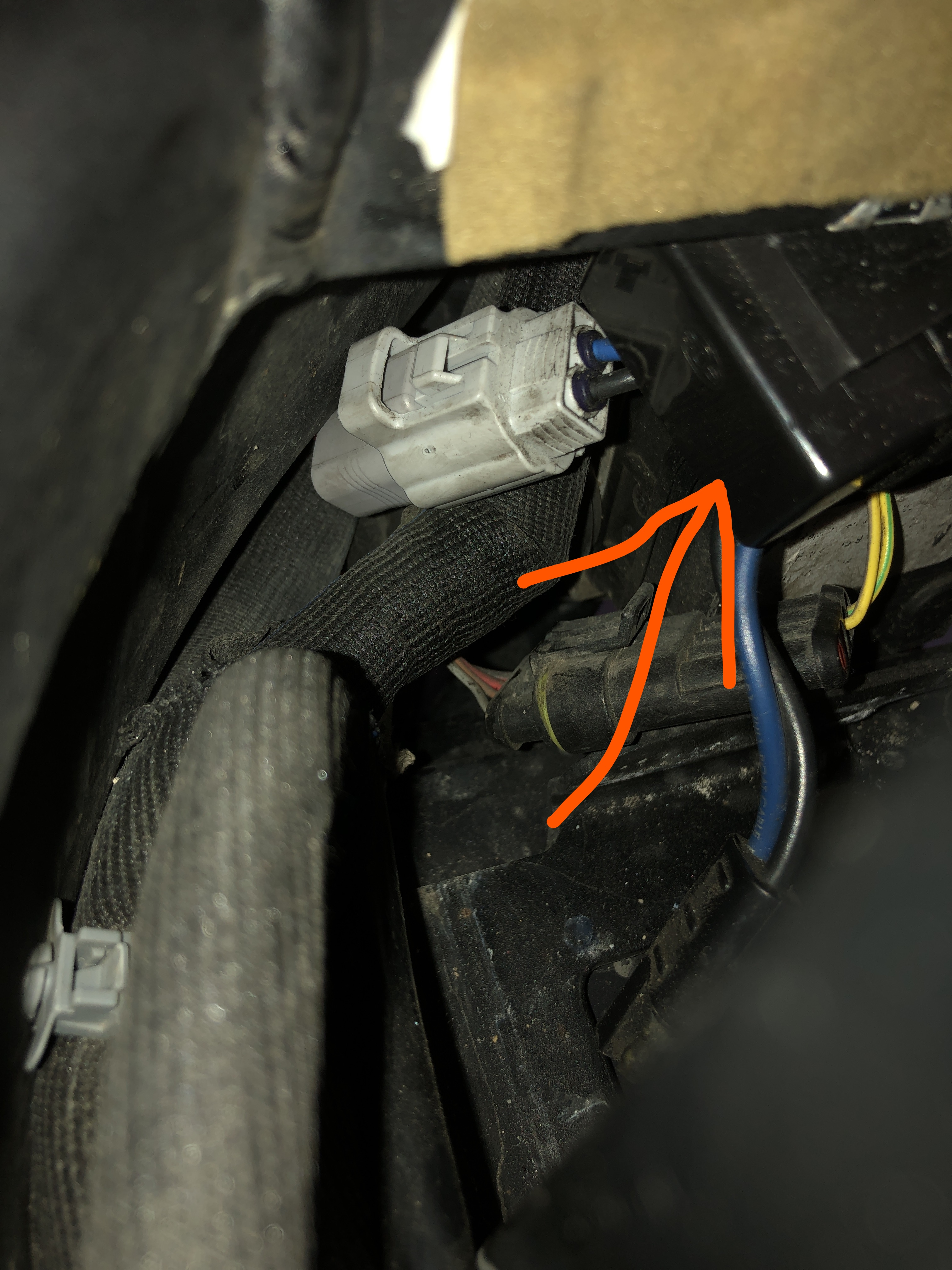 Bin relativ sicher, dass das Blinkerrelais vorn unter der vorderen Querstrebe des Rahmens wohnt. Diese Bilder sind von meiner Suche nach dem 12V Accessories Stecker am selben Ort (dem grauen), roter Pfeil auf das vermutete Relais: