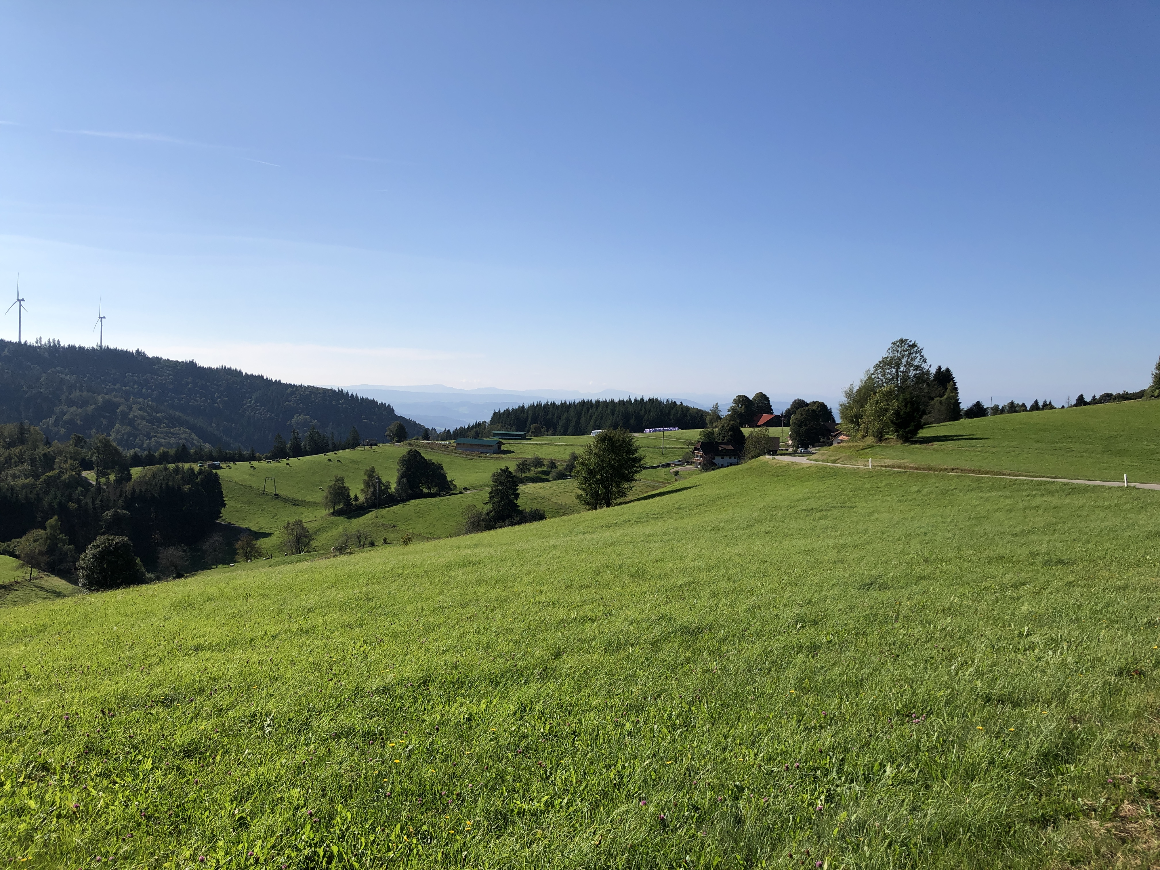 Mit 74% ging es jetzt tiefer in den Schwarzwald, vorbei am schönen Titisee, über den Feldberg, durch Todtnau, bis zum meinem Hotel Multen auf fast 1100m ü.N.N., am Fuß des Belchen. Mit 33% kam ich da oben an, ließ mir die sehr spannungsstabile Schukosteckdose in der Garage zeigen, und richtete mein Zimmer dort ein.