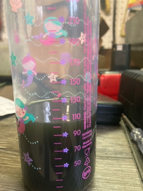 Das Öl sah nach 2500km schon relativ alt aus! Bei beiden Holmen war je Holm knapp über 100 ml drinnen! Also zu wenig!