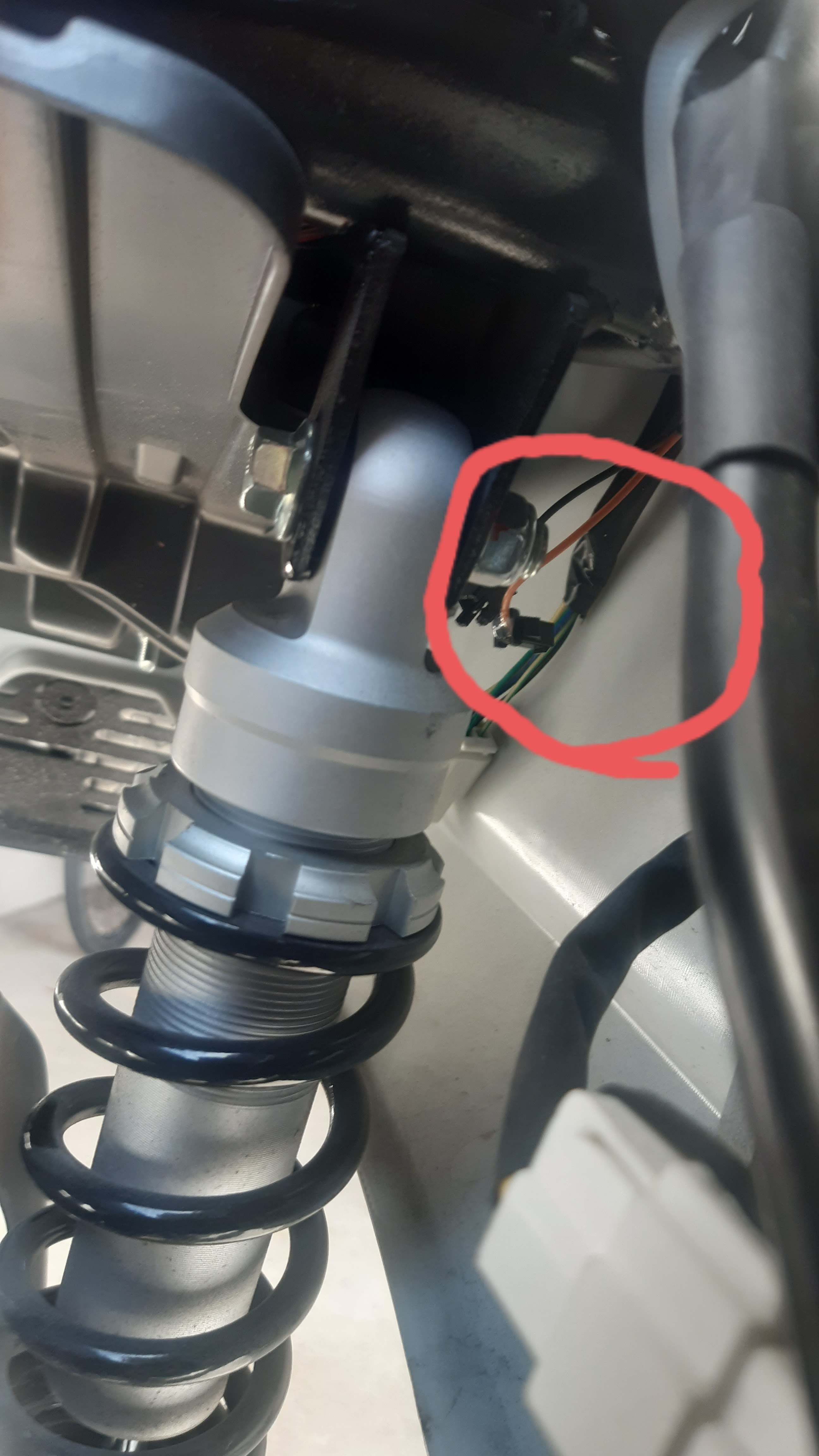 Hatte den Sitz samt Box heute runtermontiert und ins Innenleben des Rollers geschaut. Eigentlich alles ganz gut verlegt und befestigt, Kabel und Züge.
