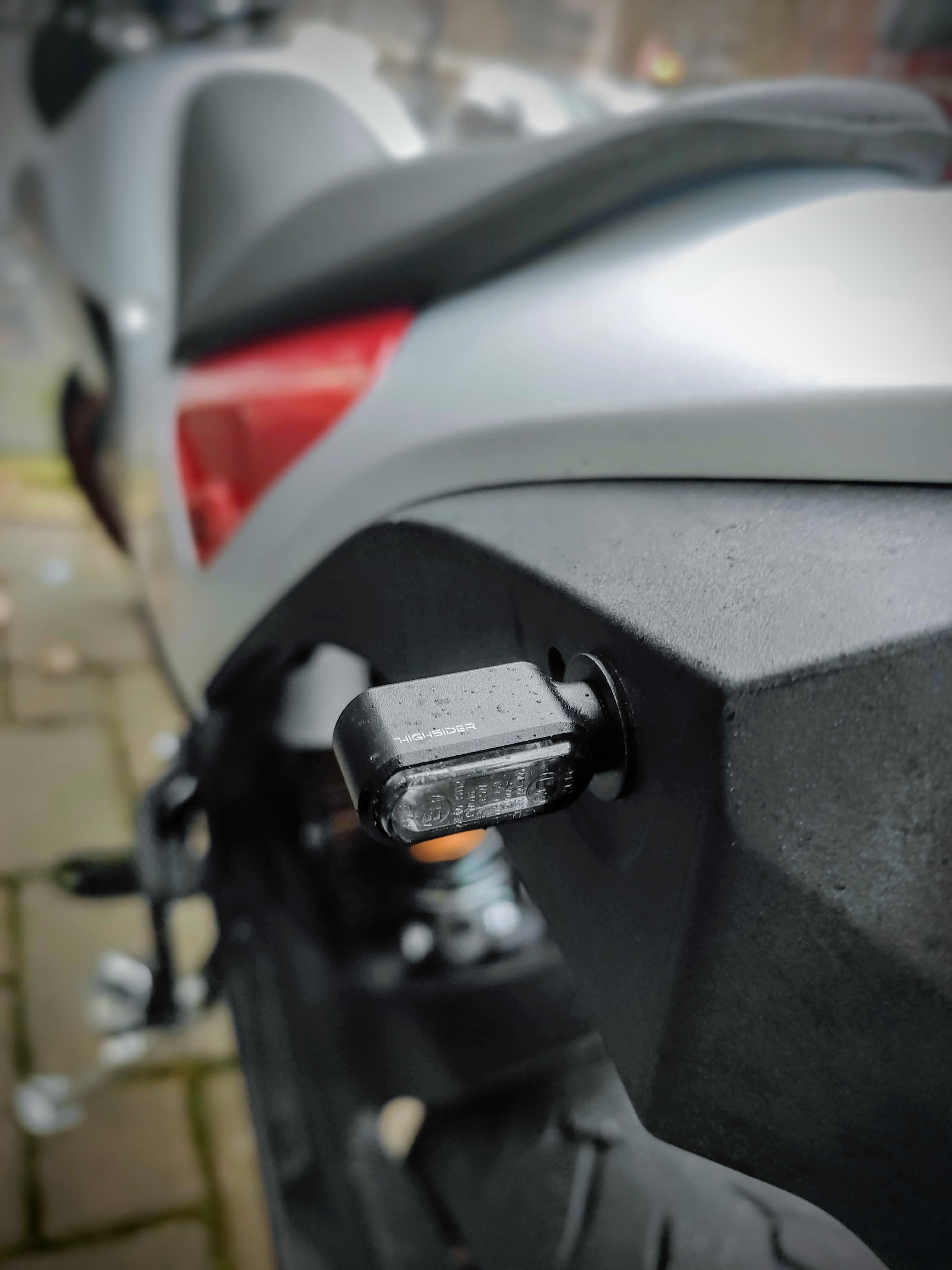 Womit ich sehr zufrieden bin sind die kleinen Highsider Little Bronx LED Blinker. Fast schon zu hell.