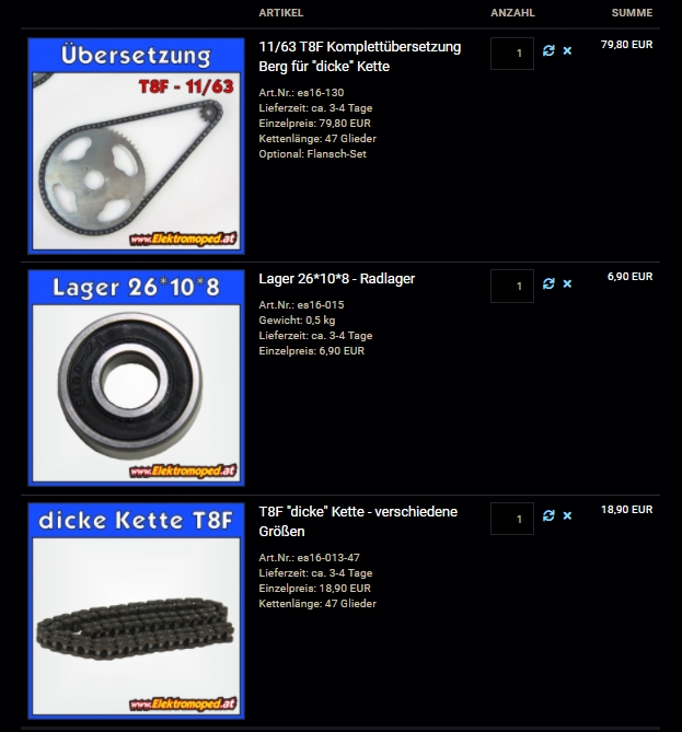 Dann hab ich heute morgen die 63-er in den Warenkorb getan, aber die EMoped-Website ist heute schon den ganzen Tag down, just nachdem ich alles im Warenkorb hatte. Geht es hier jemandem ähnlich? (EDIT: Geht wieder, PC neu gestartet)