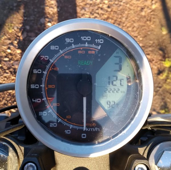 Exakt zwei Wochen nach Erstzulassung...etwas verschwommen, da die Schutzfolie noch auf dem Tacho drauf ist.