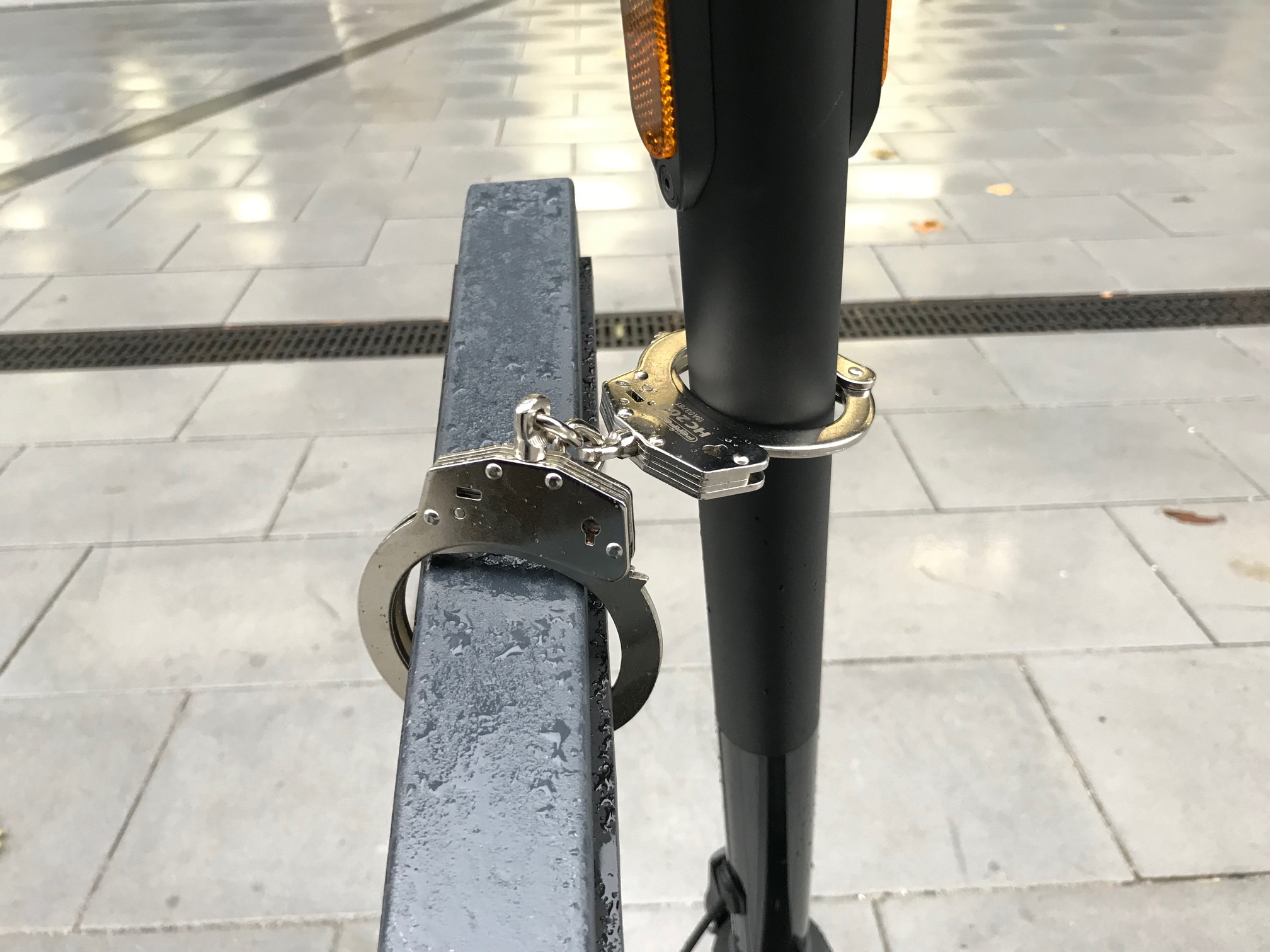 Dünne bessere Stahlbügelschlösser gäbe es auch, nur dann steht es genau um 90 Grad gedreht und man bekommt es sicherlich sehr schwer oder gar nicht an einer Stange montiert.