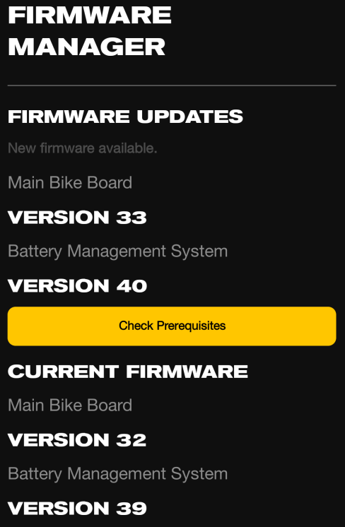 - Ich muss mir das Menü "Firmware" tatsächlich anschauen, wenn das Bike verbunden ist ! (hätte mir ja klar sein müssen)