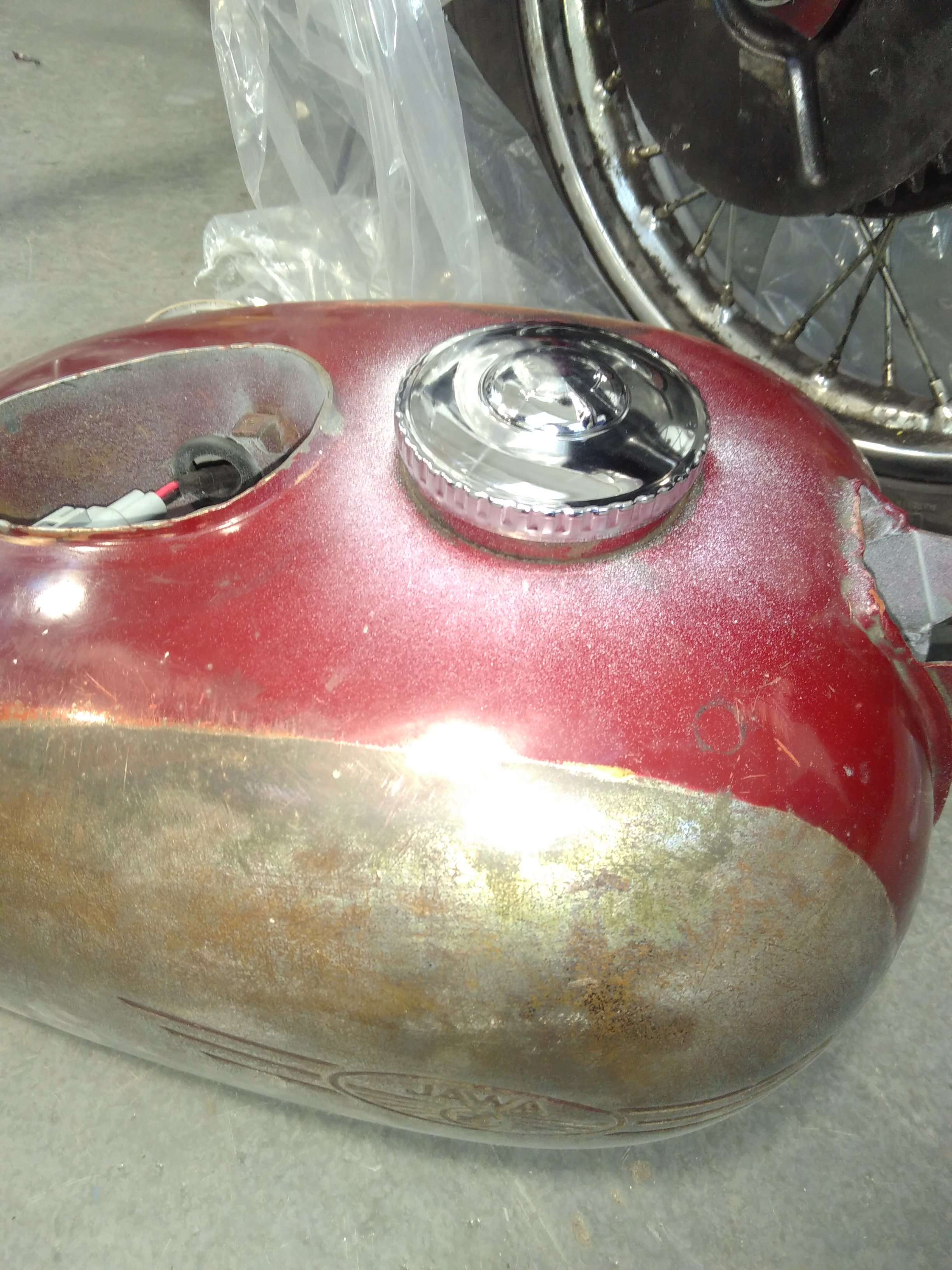 Die Jawa hatte trocken 132kg, jetzt etwa 20 kg weniger, macht 112. Das Gesamtgewicht schätze ich auf 200kg.