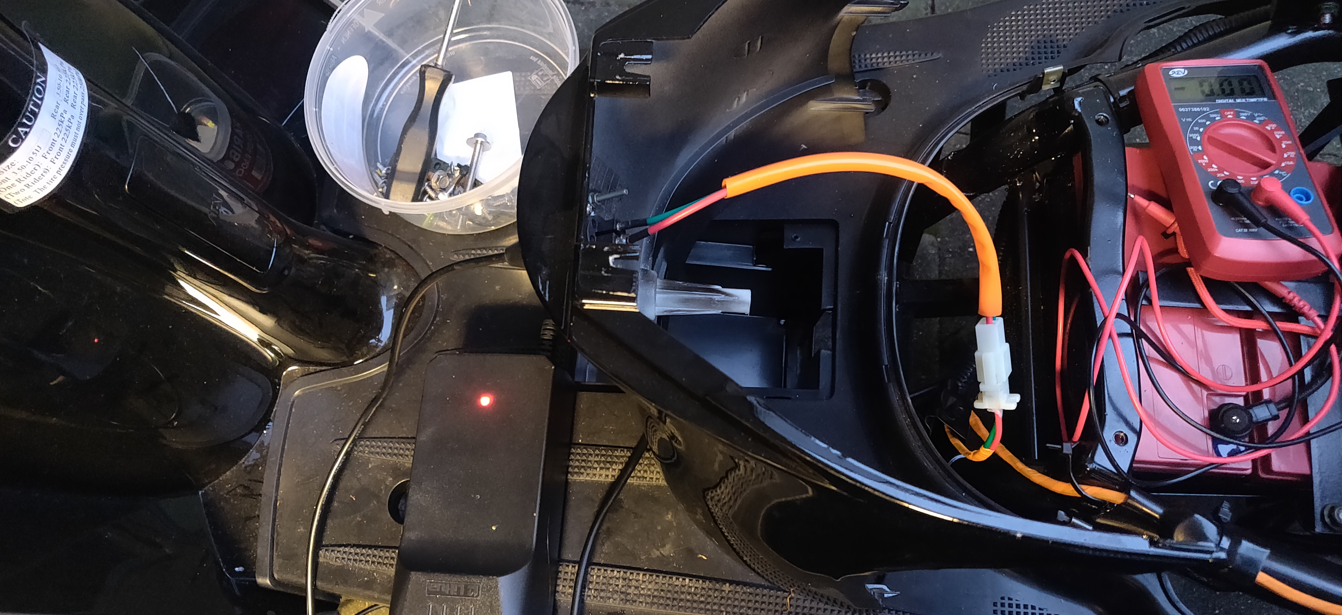 2 h mit LG brachten keinen Erfolg, die Lampe blinkt aber das LG schaltet sich nicht ein. Spannung im Roller konnte ich nicht messen, die Spitzen vom Messgerät waren zu dick.