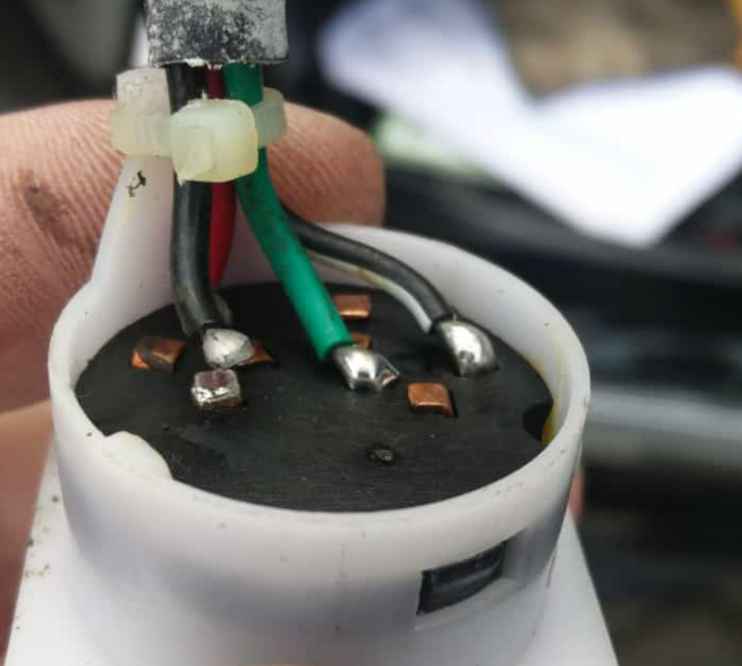 Diese Art Zugentlastung mit Kabelbinder war wohl nicht ideal 😁