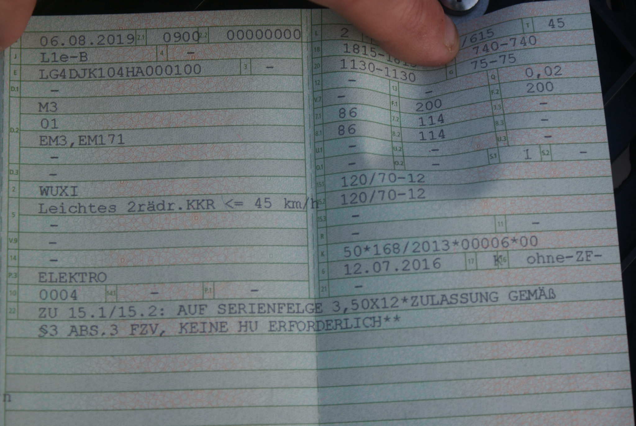 Alle COC der Roller in Kopie per Mail hin. Nach 3 Tagen kam die Antwort, super recherchiert