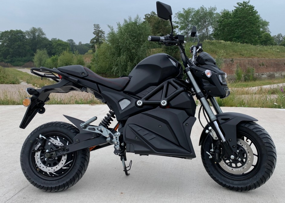 E-Moto E-MV5 ist ein 125 ccm äquivalentes Elektromotorrad mit einem 5000-Watt-Motor direkt im Hinterrad (also keine Kette oder Getriebe). Dieses Motorrad gilt als 125 ccm, daher ist der Besitz des A1-Führerscheins unerlässlich.