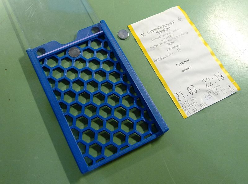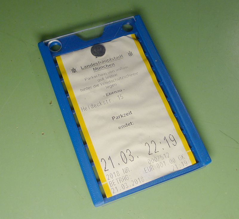 Wie groß ist dein Anwohnerparkausweis? Für Parkscheine aus dem Automaten habe ich für den 3D-Drucker etwas entworfen. Die beiden Hälften werden zusammengeklebt.