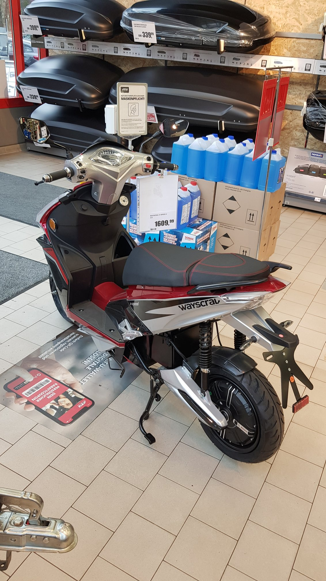bin gerade auf der Suche nach einem weiteren unvernünftigen Spielzeug und u.a. auch über den Wayscral e-Speed hier im Forum gestolpert. 65km/h klingt als Stadtroller gut. Nach einem ausgiebigen Chat mit einer realen Person auf der ATU-Seite direkt mal nach Hannover bestellt und gestern begutachtet sowie eine Runde gefahren (ging leider nur um das Gebäude, rotes Kennzeichen war nicht vorhanden).