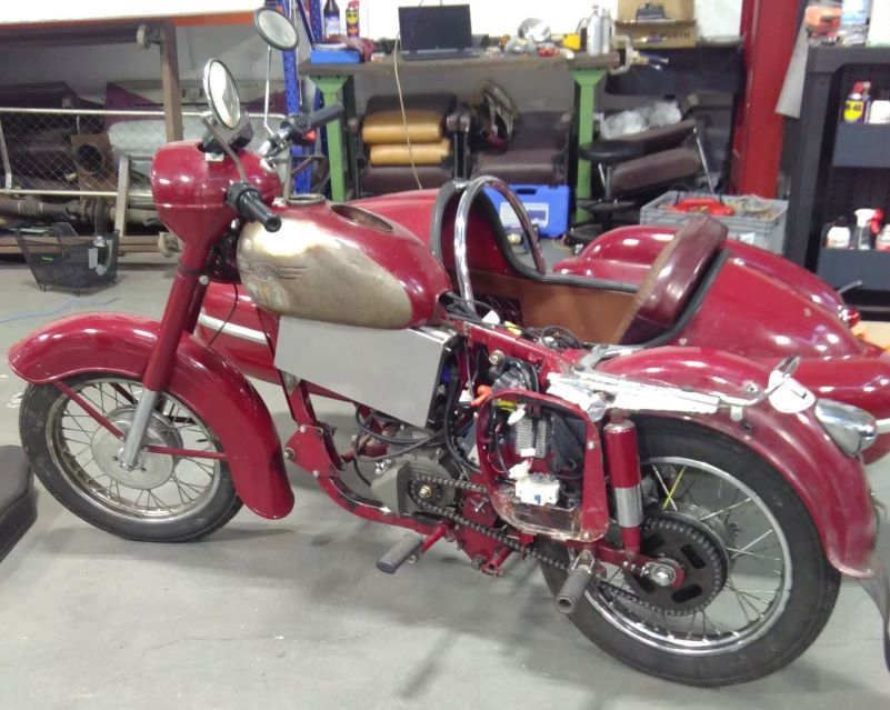 Die Jawa hatte trocken 132kg, jetzt etwa 20 kg weniger, macht 112. Das Gesamtgewicht schätze ich auf 200kg.