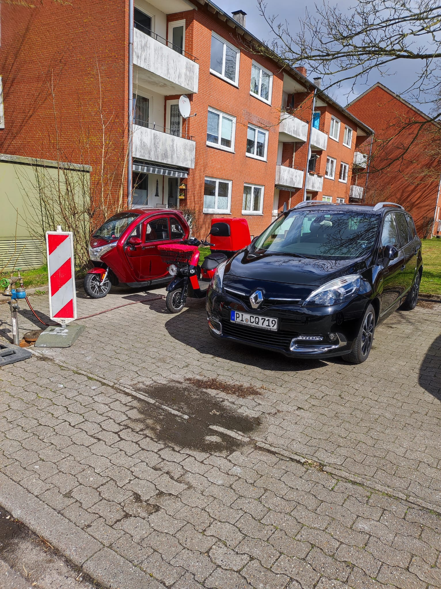 Zu unserer Familie gehört noch unser kleiner Terrier-Rüde Benny (13 Jahre jung). Unser Fuhrpark besteht aus einem Renault Grand Scenic 150dci (Baujahr 2016), seit Dezember l.J. der dreirädrige Rolektro E-Carrier 25 mit XXL-Koffer (Baujahr 2019), seit Ende März d.J. ein Kabinenroller Econelo F1-45 (ANAIG ANJ2000) sowie ein restauriertes, umgebautes Oltimer Elektrofahrrad von Kynast (Baujahr 1998).